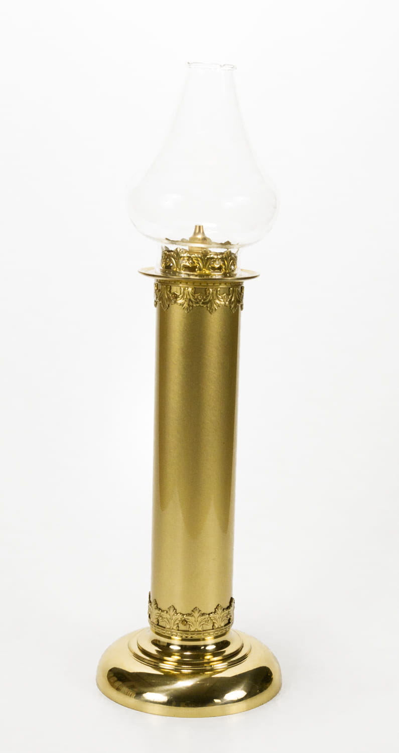 Akolitka wykonana z odlewów mosiężnych. Zabezpieczona lakierem bezbarwnym. Klosz do akolitki gratis. Cena dotyczy jednej sztuki.