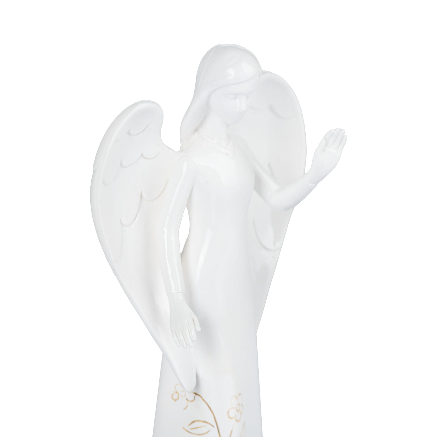 Skrzydła anioła są szerokie i imponujące, również w tonacji czystej bieli.