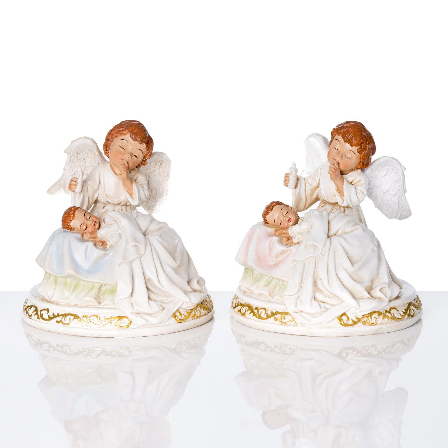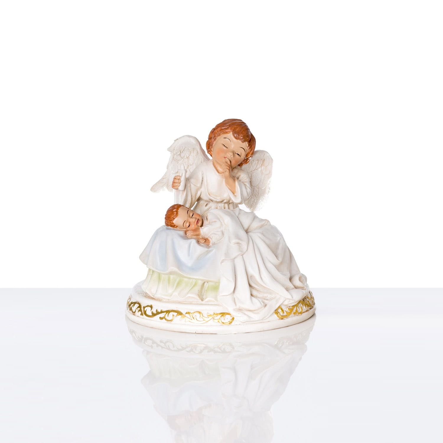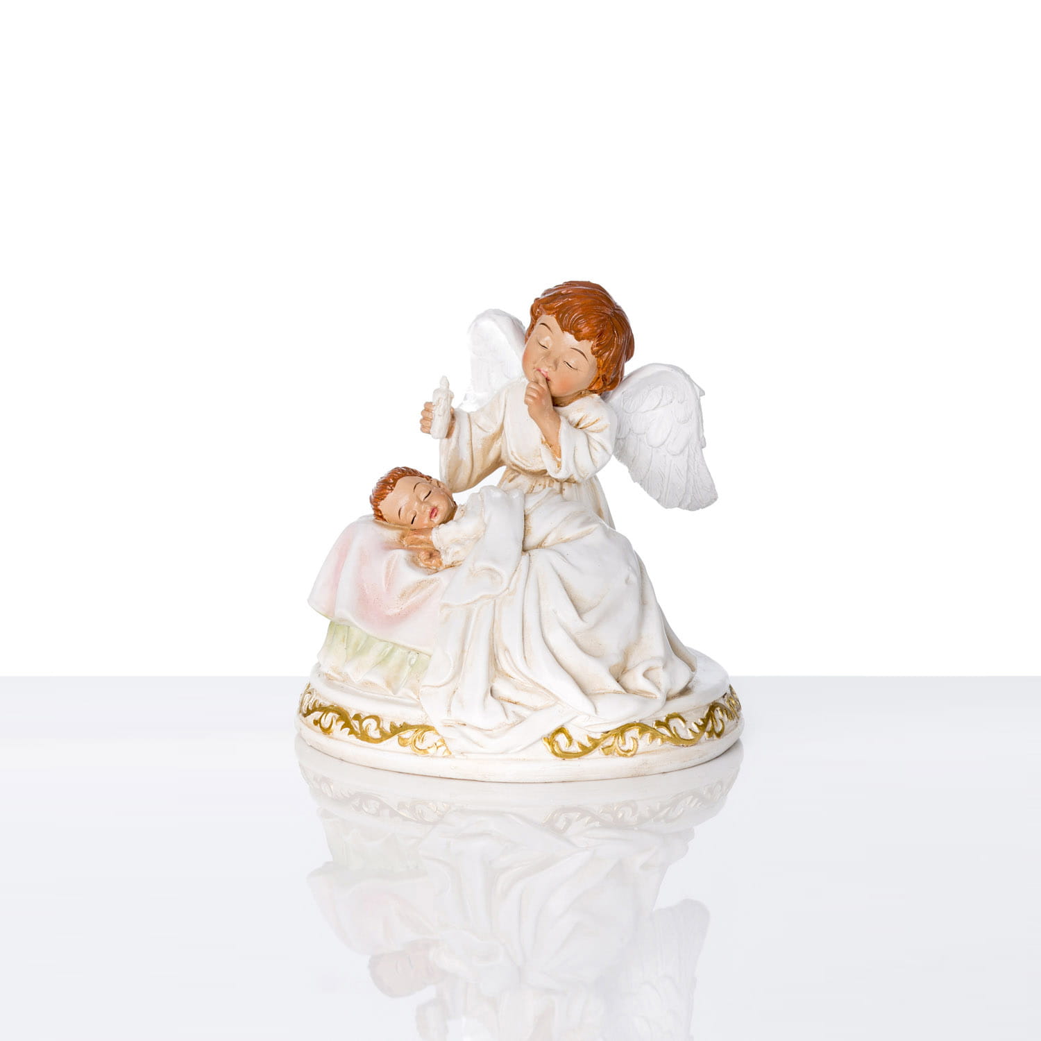 Anioł stróż z dzieckiem na kolanach. Anioł wykonany z żywicy. Figurka ręcznie malowana z dużą dokładnością.