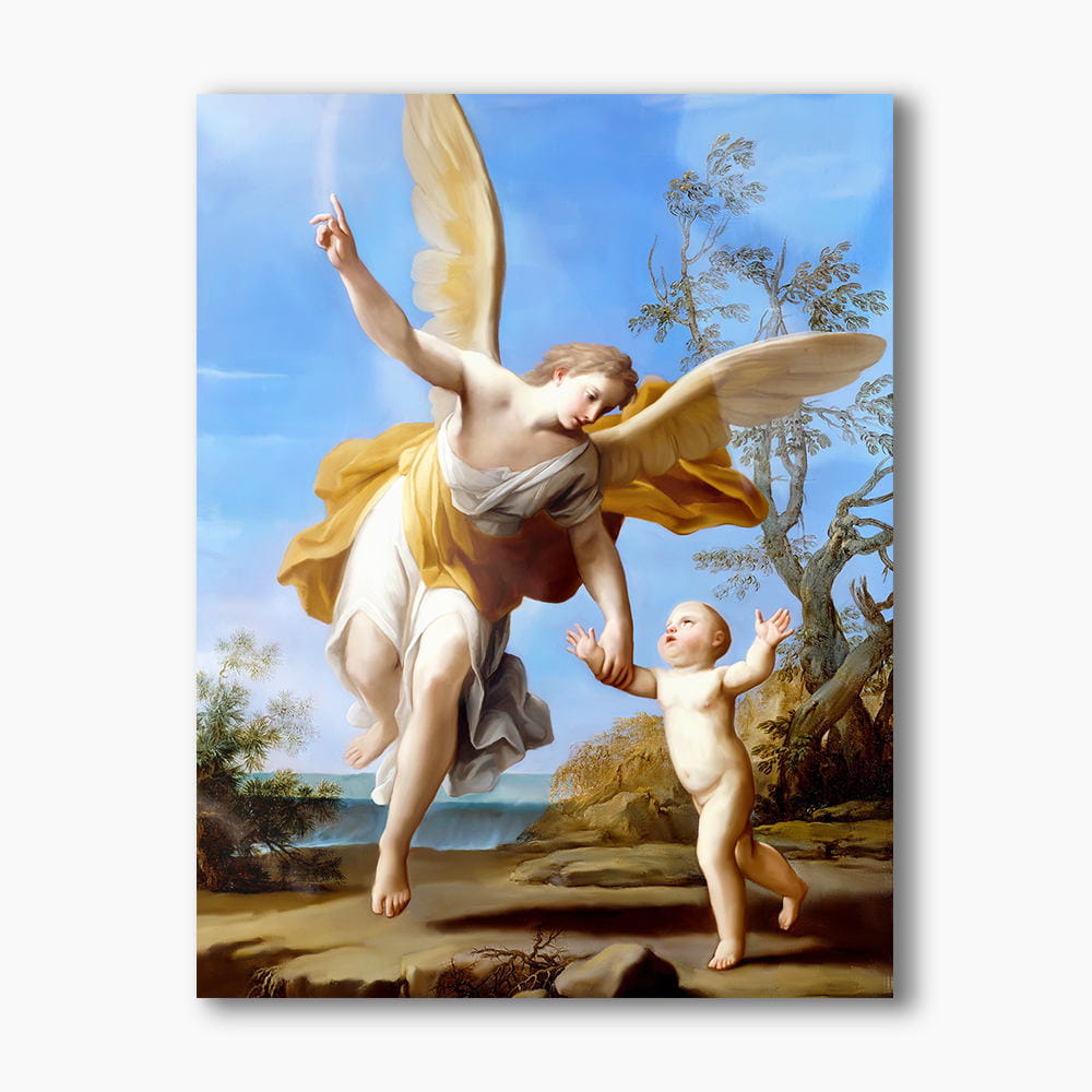 Nowoczesny obraz religijny plexi, Anioł Stróż z dzieckiem