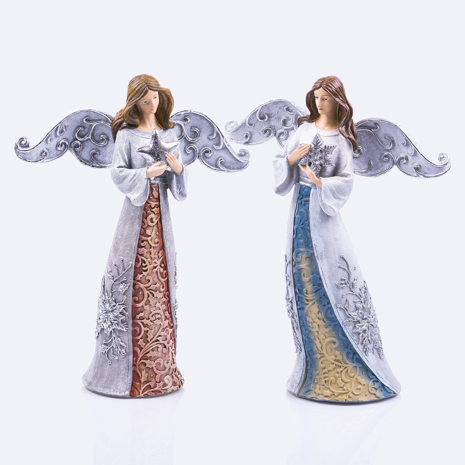 Figury aniołów: śnieżynka, gwiazda. Figura Anioła wykonana jest z żywicy malowana ręcznie w oryginalnej stylistyce.