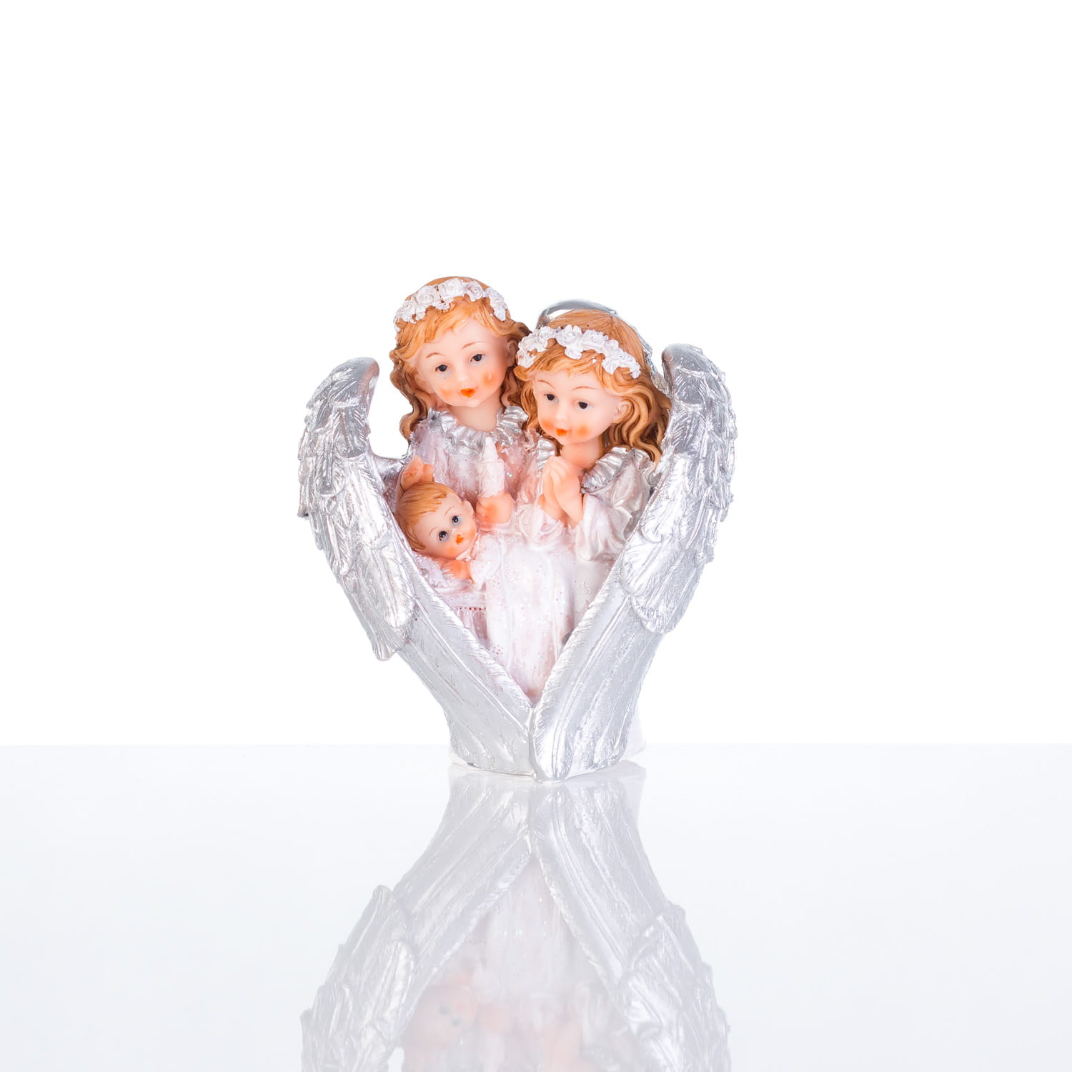 Piękna figura z aniołami stróżami. Ręcznie malowana. Figura wykonana jest z żywicy.