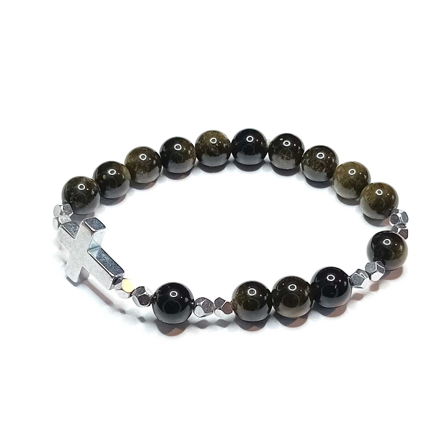 Bransoletka dziesiątki różańca wykonana z naturalnych kamieni obsydianu i hematytu to elegancki i duchowy dodatek, który nie tylko służy jako narzędzie modlitwy, ale również niesie ze sobą znaczenie ochrony, siły i wewnętrznego spokoju, co jest bliskie katolickim wartościom.
