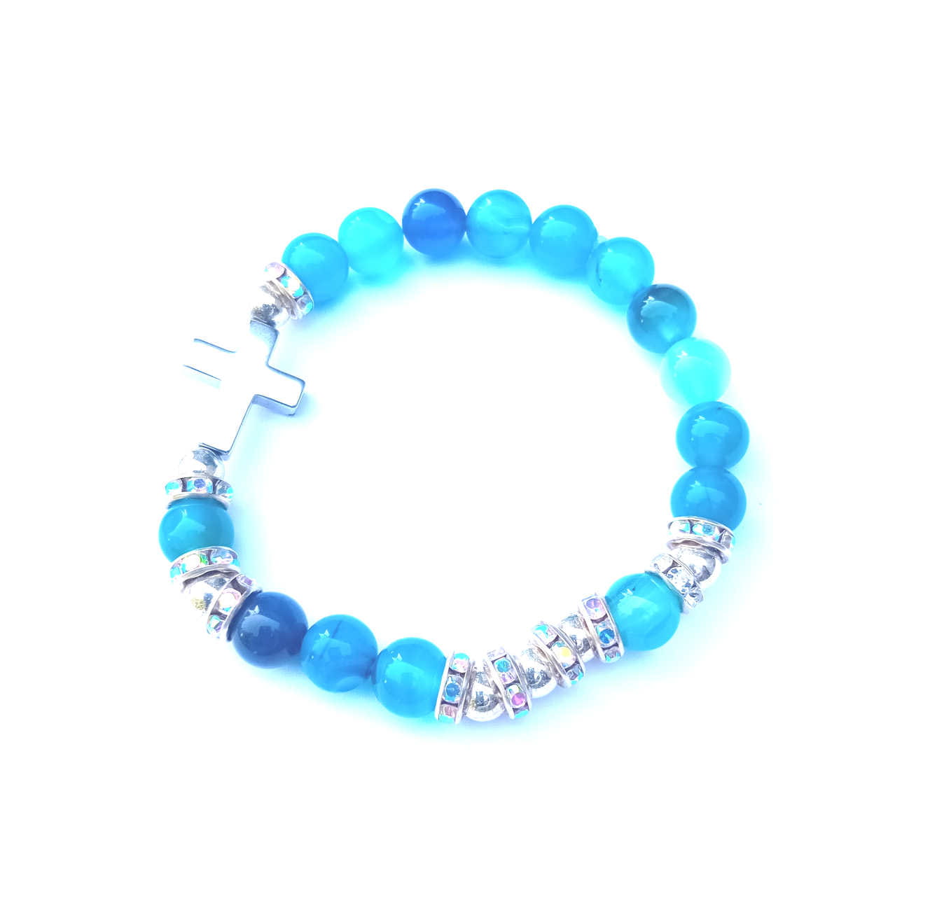 Bransoletka - różaniec - kamień naturaln smoczy agat z krzyżykami z masy perłowej