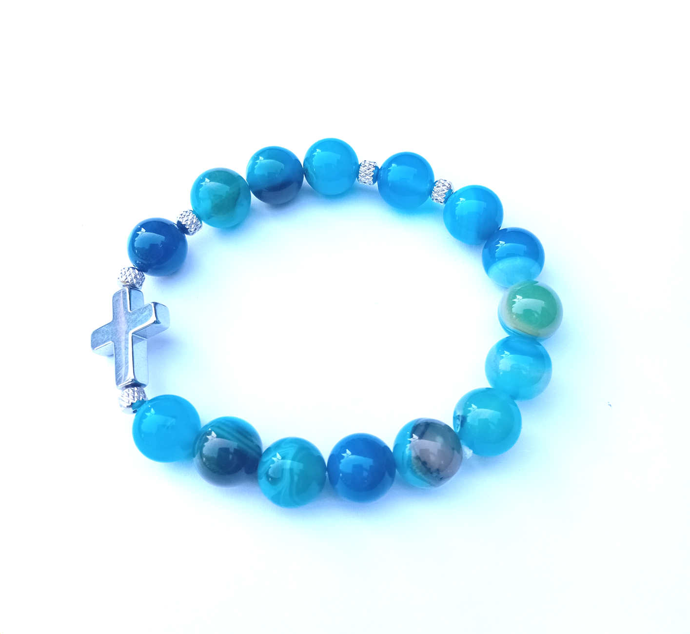 Dziesiątka różańca - Bransoletka - kamień naturalny agat srebrny drut