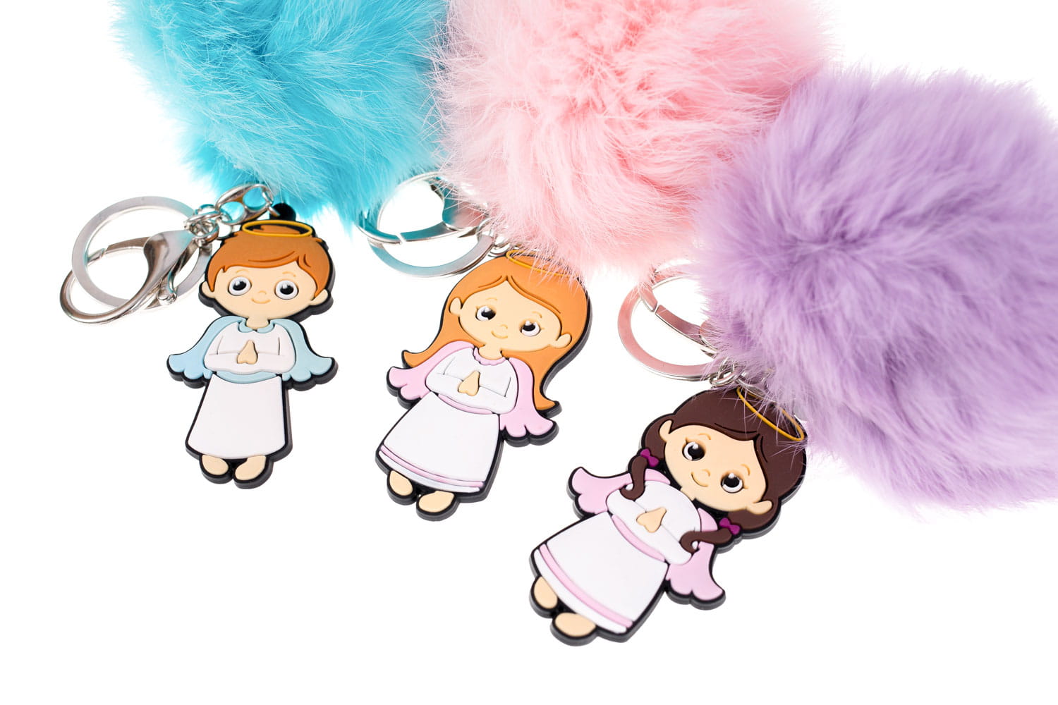 Piękny breloczek do kluczy z aniołkami z przypinką.