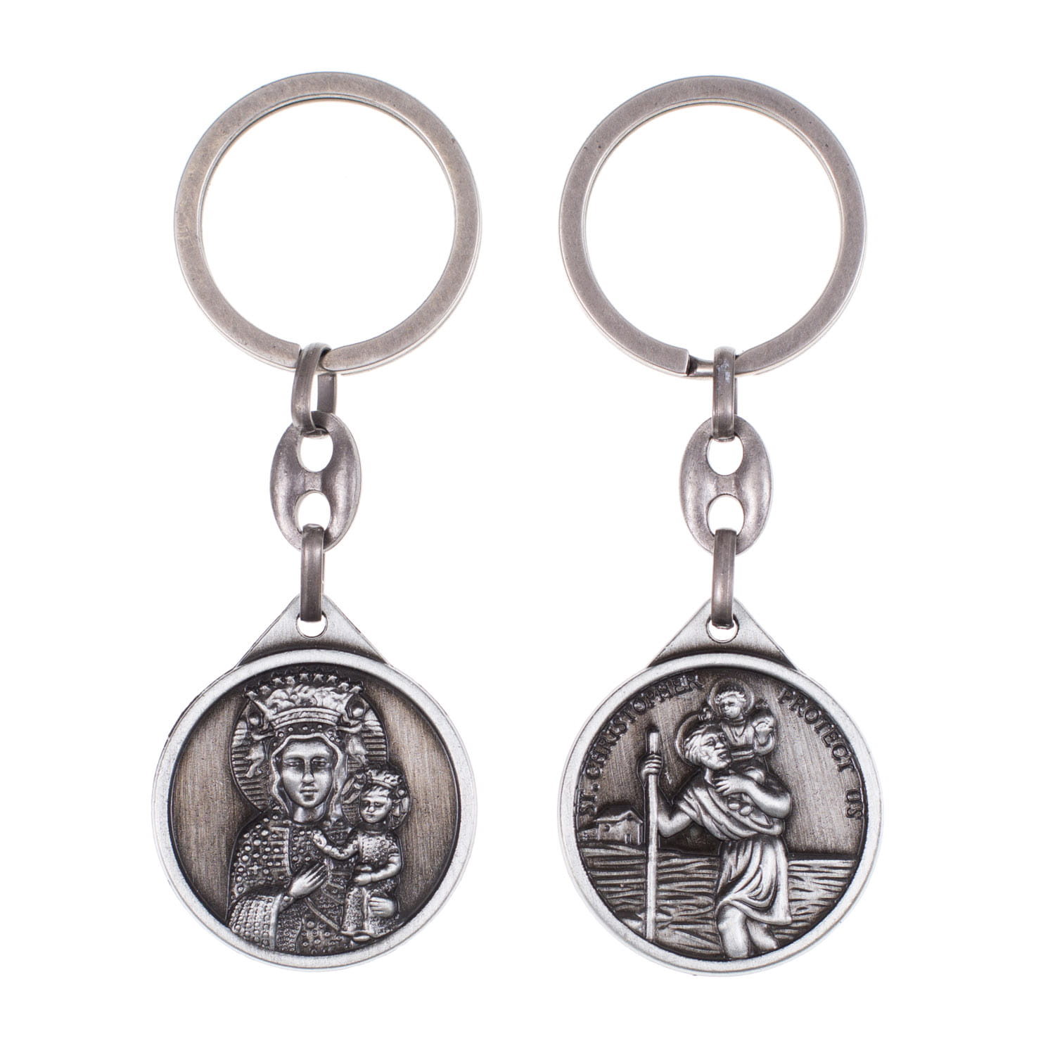 Brelok Metalowy ze Świętym Krzysztofem i Matką Bożą Częstochowską