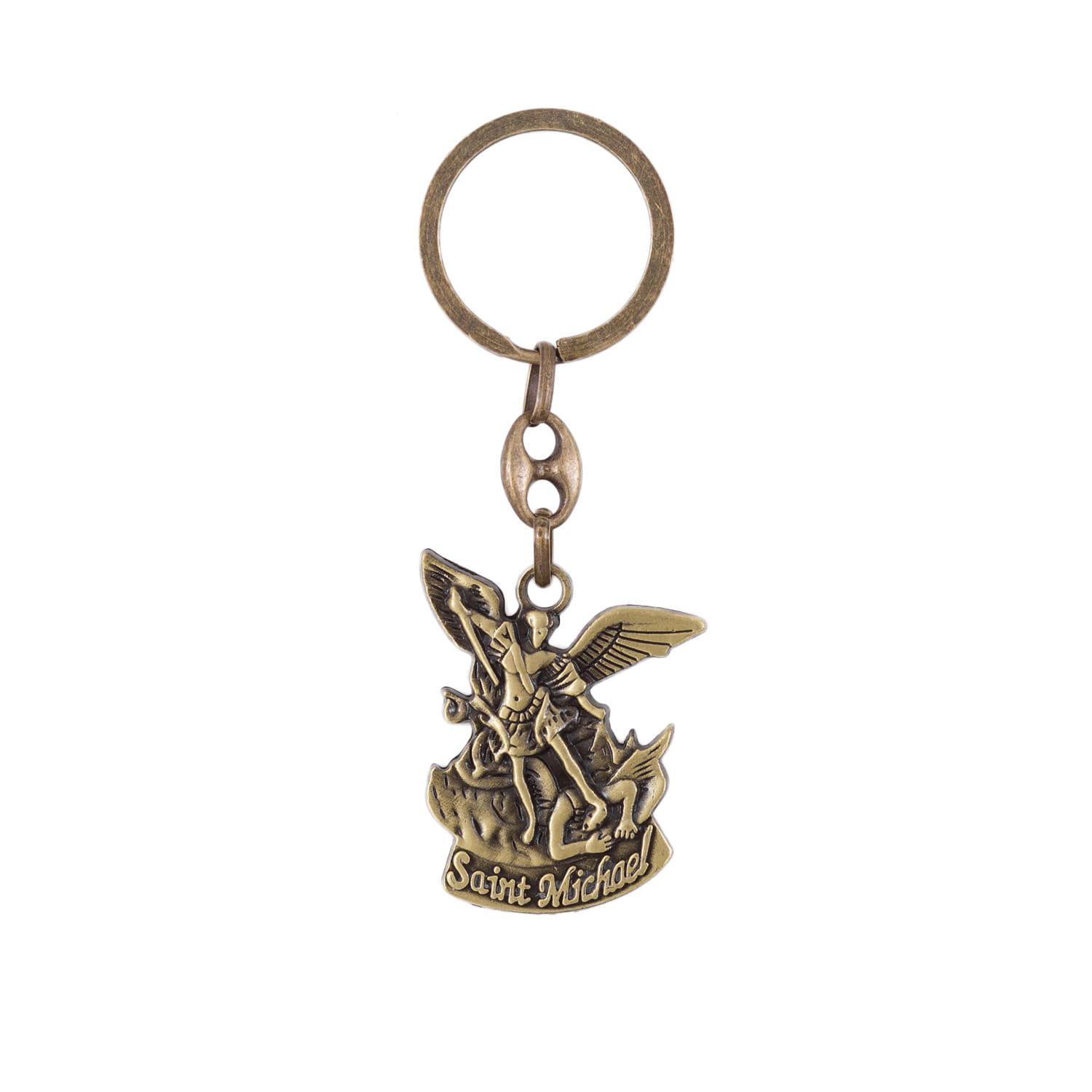 Metalowy brelok z Archaniołem Michałem.