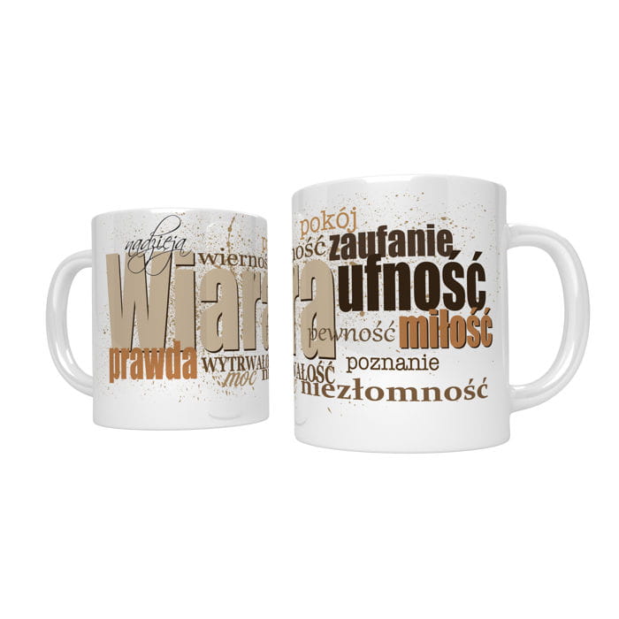 Biały kubek ceramiczny, religijny, z Krzyżem, o pojemności 330 ml. Najwyższej klasy ceramiczny kubek odporny na mycie w zmywarce z trwałym nadrukiem i nieblednącymi kolorami.