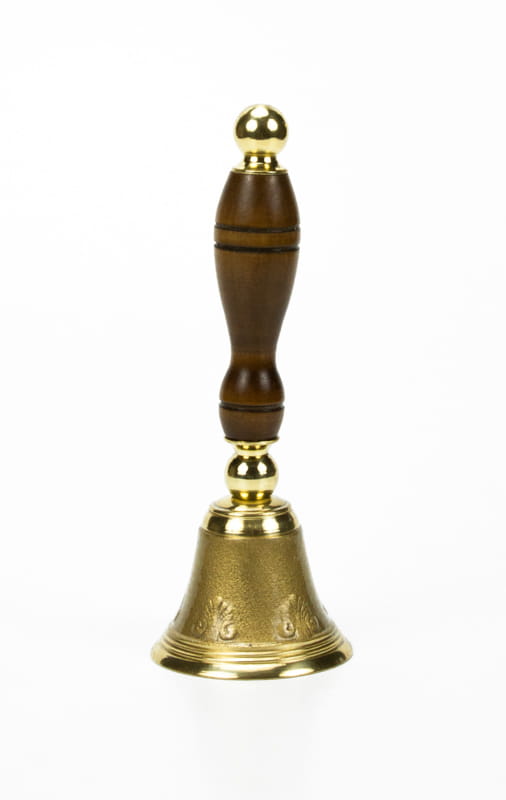Mosiężny dzwonek pojedynczy wykonany z odlewu ozdobionego sakralnym wzorem. Sercem dzwonka to trzy mosiężne kuleczki które nadają soczysty dźwięk dzwonkowi