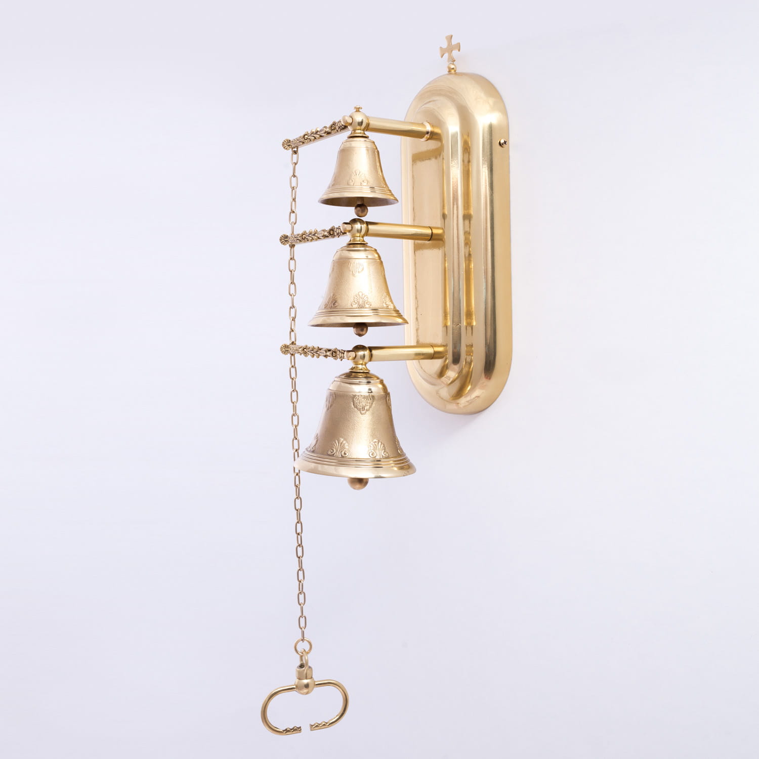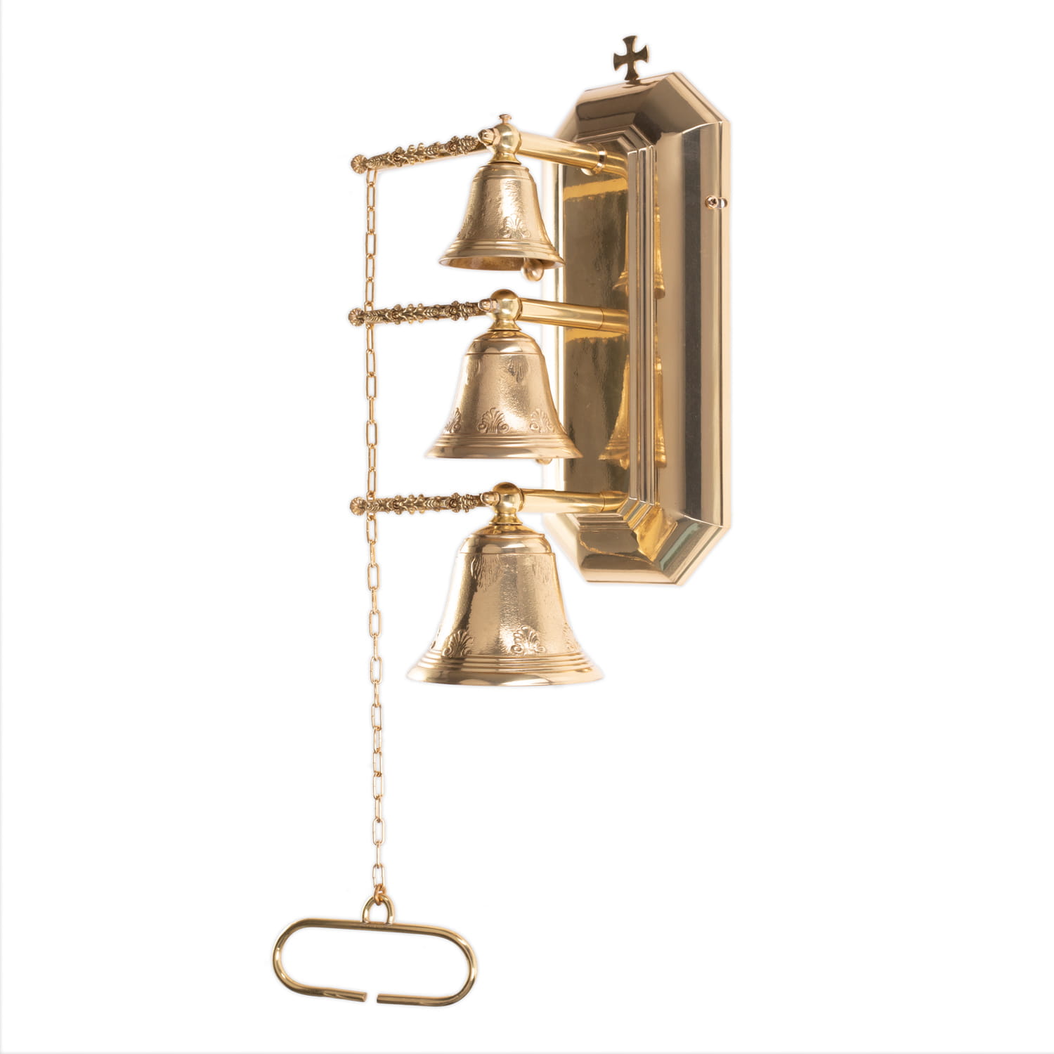 Dzwonek wykonany z włoskich elementów mosiężnych. Trzytonowy sprężynowy. Zabezbieczony lakierem bezbarwnym. Nie wymaga bieżących konserwacji.