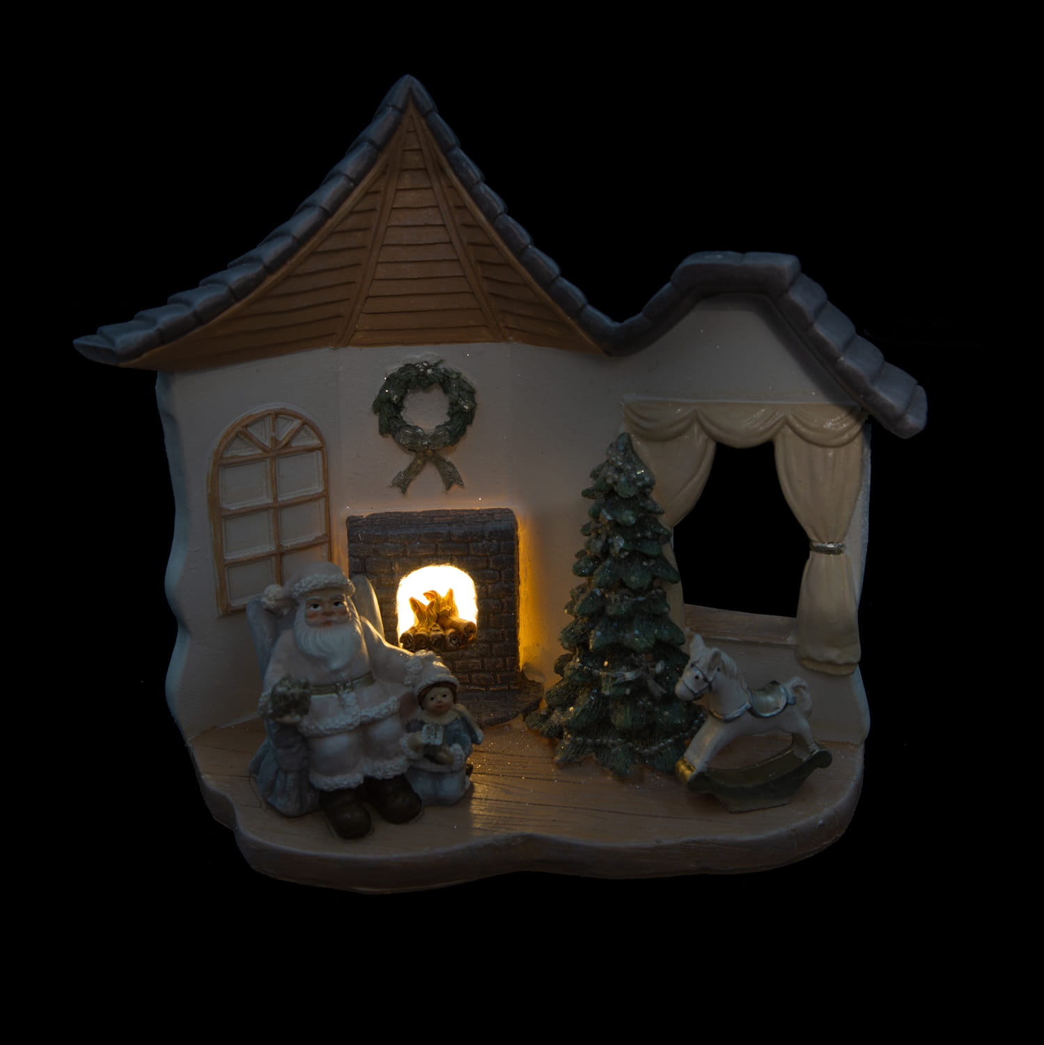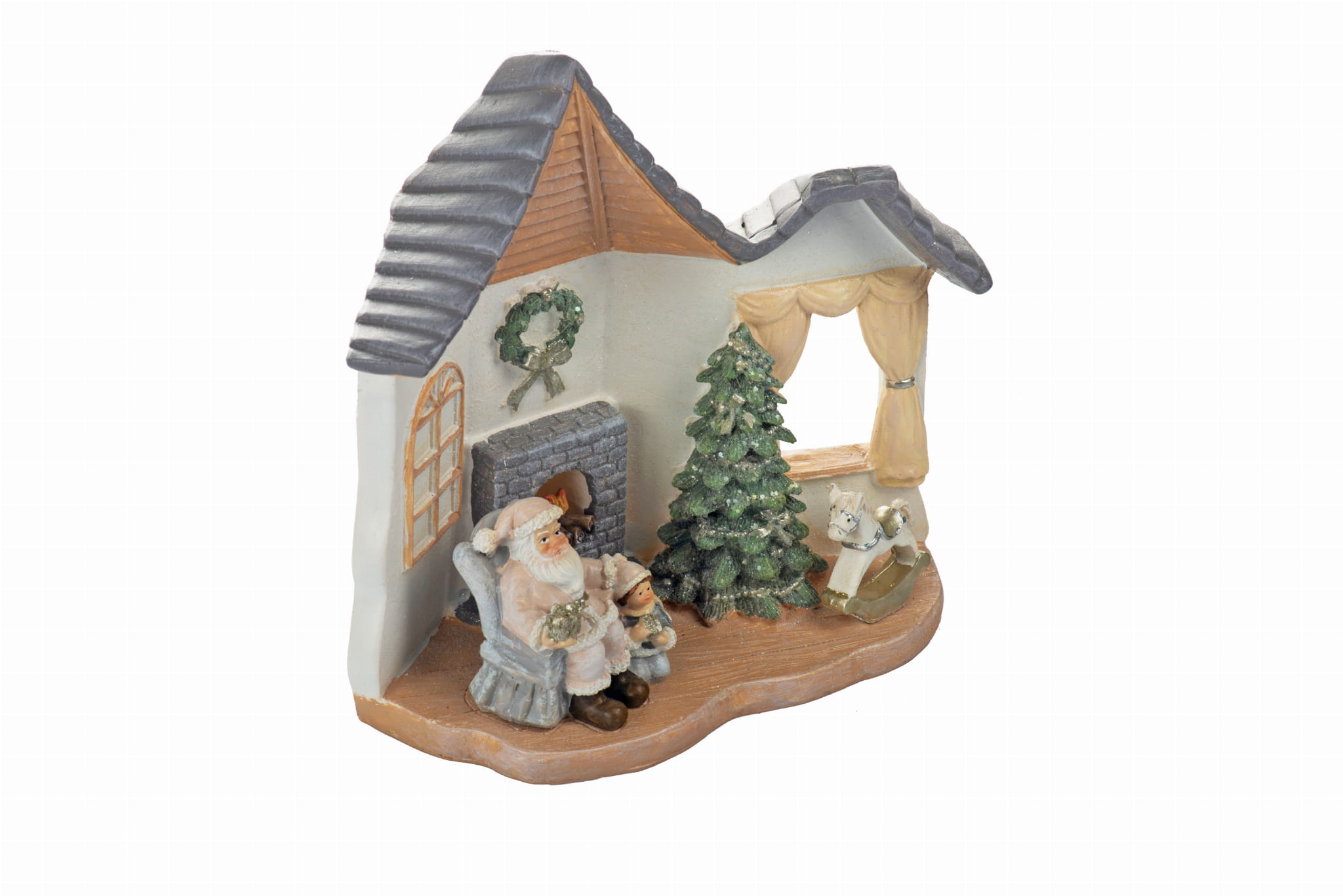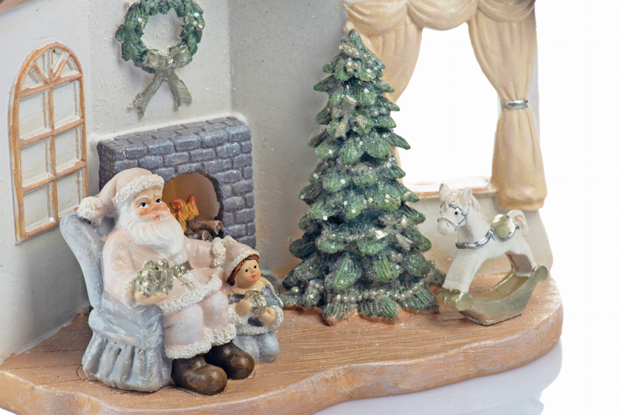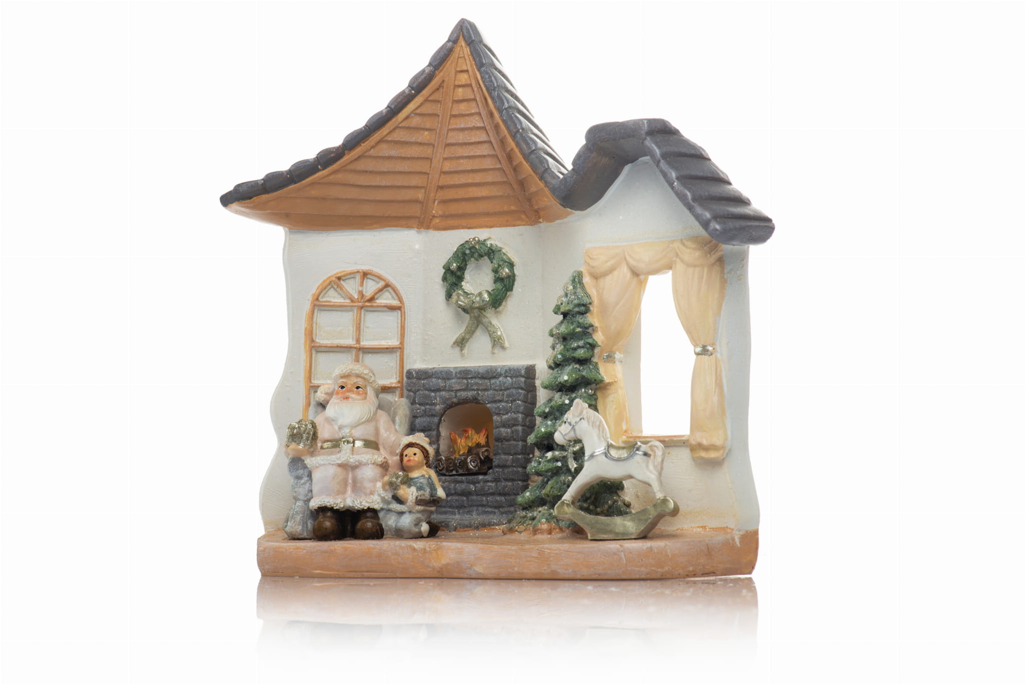 Figurka wykonana jest z żywicy i ręcznie malowana. Doskonała ozdoba w klimacie Świąt Bożego Narodzenia. Szczególnie przypadnie do gustu naszym najmłodszym. Domek z Mikołajem posiada oświetlenie led.