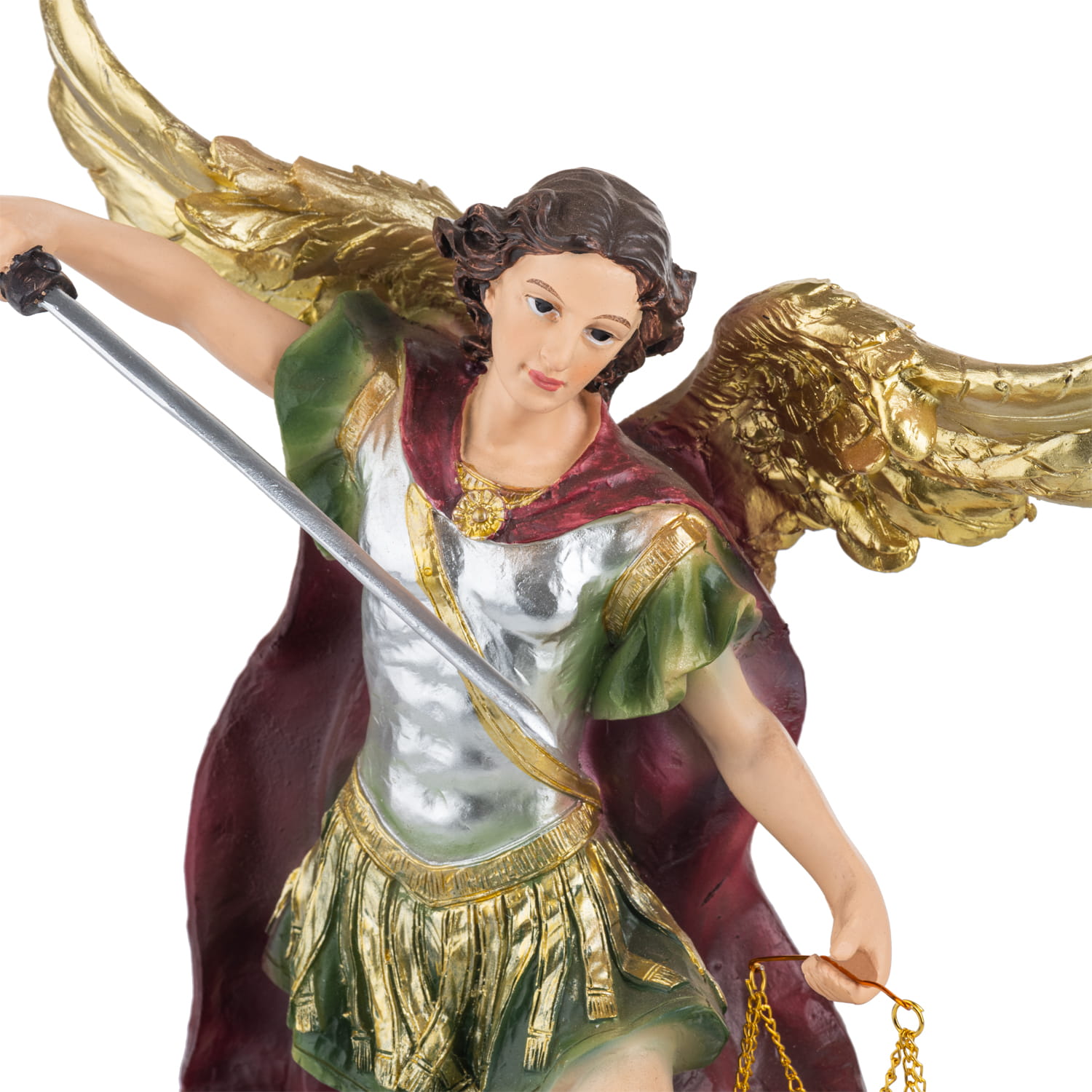 Piękna figura Michała Archanioła wykonana z żywicy w soczystych kolorach ręcznie malowana.