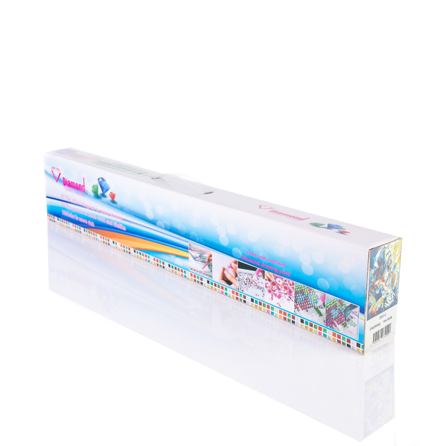 Płótno z nadrukowanym obrazem, pokryte klejem i zabezpieczone folią woreczki z diamencikami, z numerami pozwalającymi na łatwe dopasowanie do symbolu zgodnie z legendą umieszczoną na płótnie