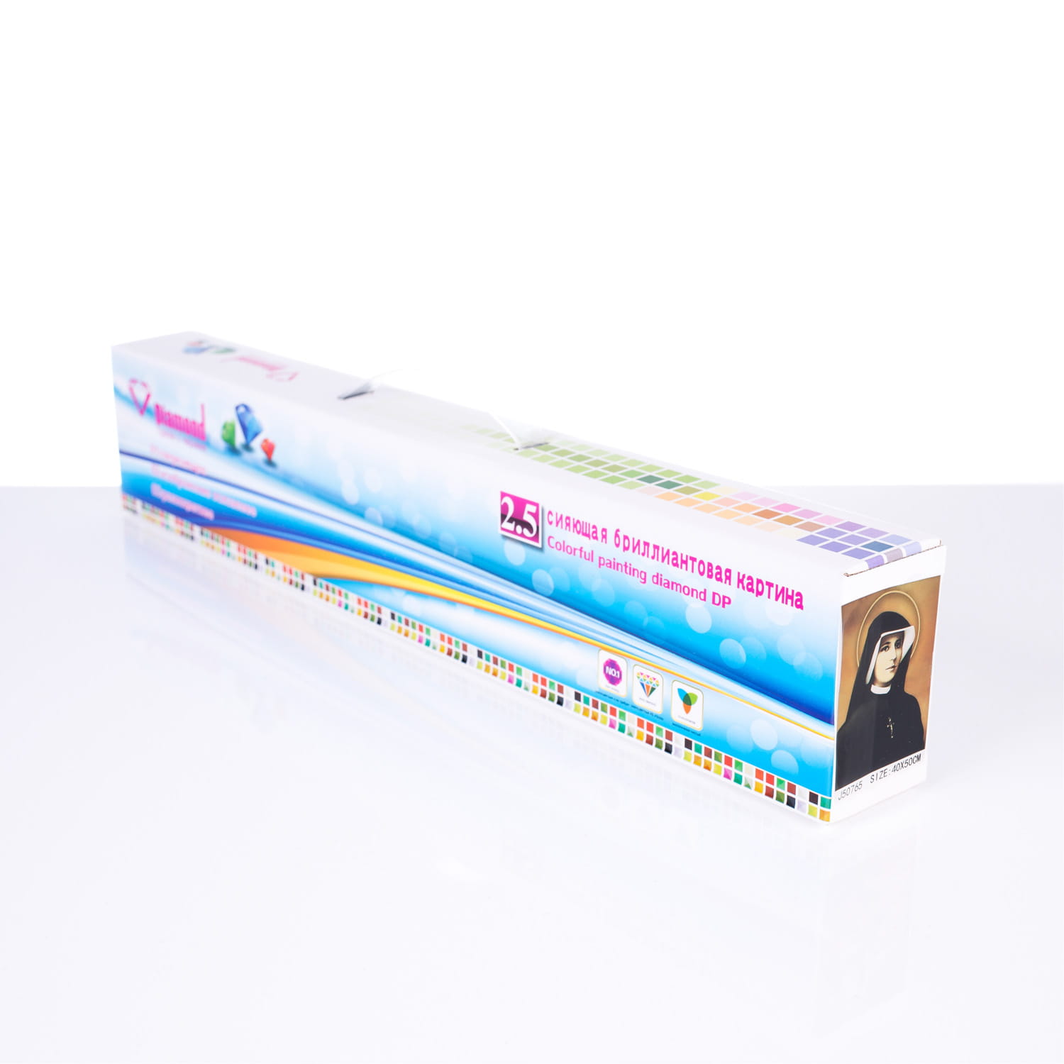 Płótno z nadrukowanym obrazem, pokryte klejem i zabezpieczone folią woreczki z diamencikami, z numerami pozwalającymi na łatwe dopasowanie do symbolu zgodnie z legendą umieszczoną na płótnie