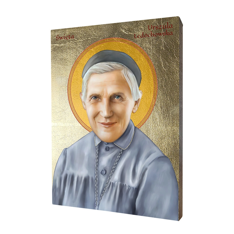 Święta Urszula Ledóchowska to postać, której życie wypełnione było miłością do Boga i ludzi. Jej misją było nie tylko szerzenie edukacji, ale również niesienie wsparcia najbardziej potrzebującym. Działała nie tylko w Polsce, ale także jako misjonarka w krajach skandynawskich oraz Rosji. Jej niezłomny uśmiech, postawa pełna pokoju i otwartości zyskały jej tytuł Apostołki Uśmiechu. Kontemplując tę ikonę, wierni mogą zwracać się do niej z prośbą o wstawiennictwo w sprawach dotyczących miłości, edukacji i życia zgodnego z nauczaniem Ewangelii.