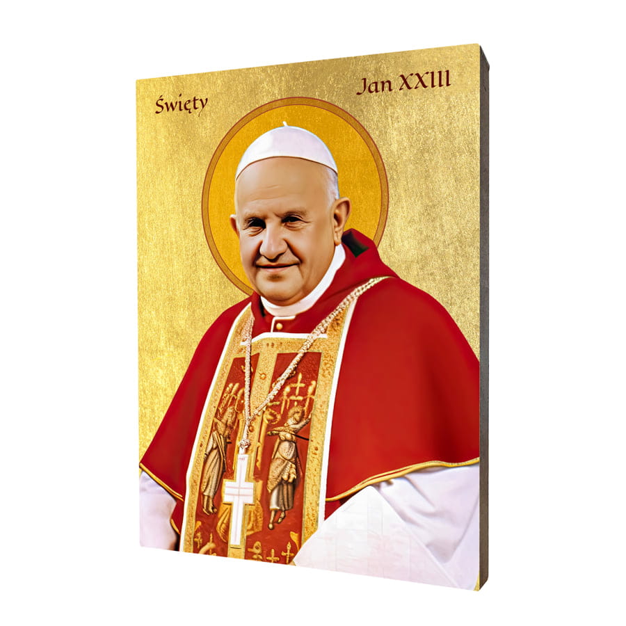 Ikona Świętego Jana XXIII została wykonana na desce lipowej, co nadaje jej solidność i trwałość. Drewno to symbolizuje naturalność i ciepło, co doskonale współgra z duchowym dziedzictwem papieża.