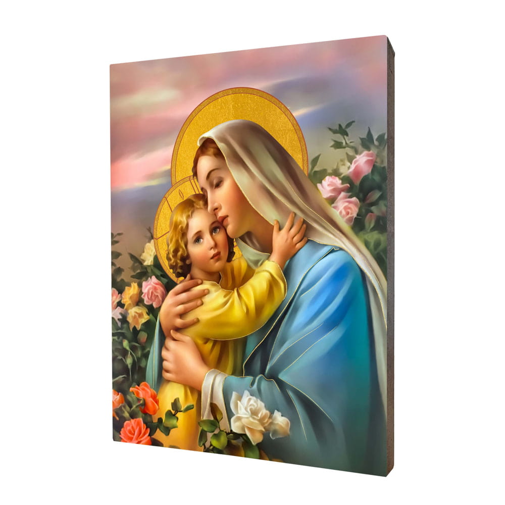 Dzięki estetycznemu wykończeniu, ikona religijna z Matką Bożą nie wymaga dodatkowej oprawy i może stanowić niezwykły upominek religijny na każdą okazję: