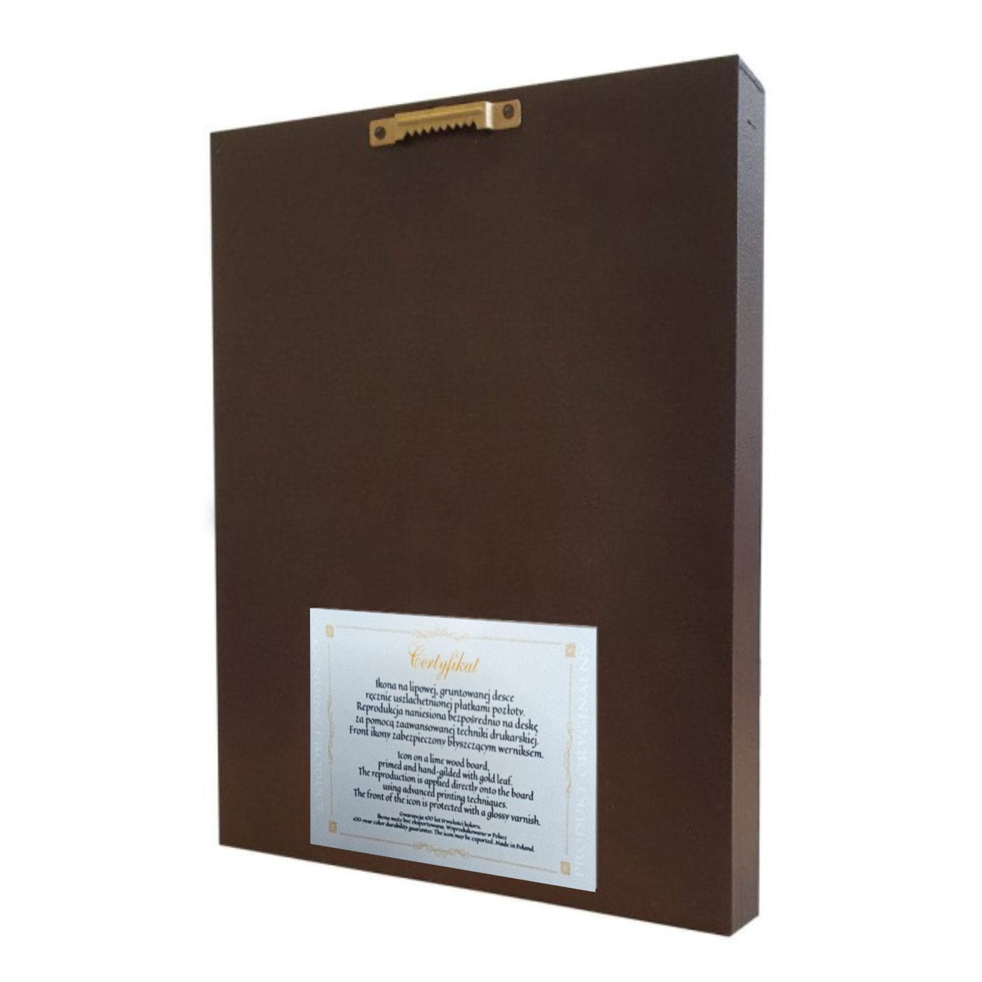 Ikona wykonana jest z naturalnego drewna lipowego i wykończona trwałą pozłotą. Bezpośredni druk zapewnia wysoką jakość detali oraz stabilność barw na długie lata. Każdy element ikony służy skupieniu, modlitwie i głębokiej refleksji duchowej.