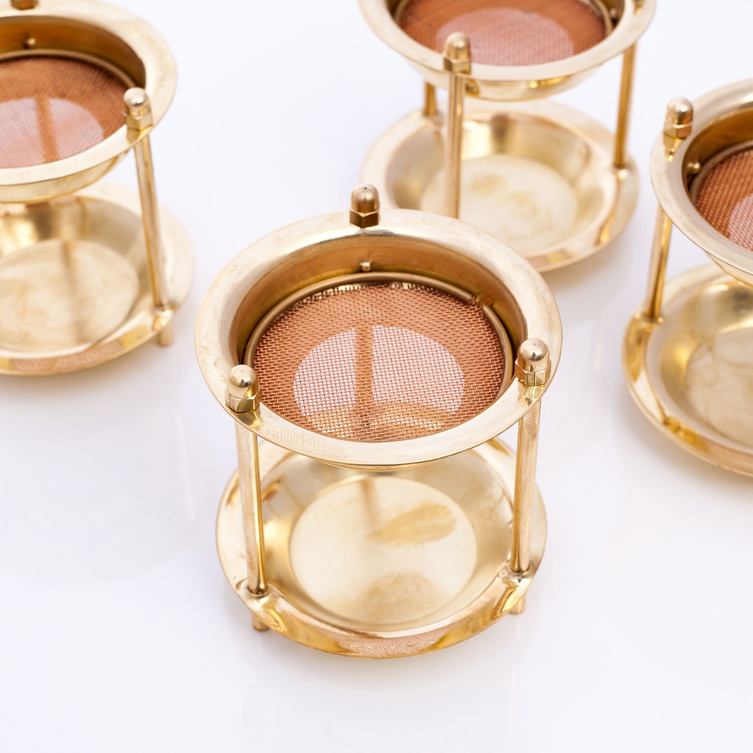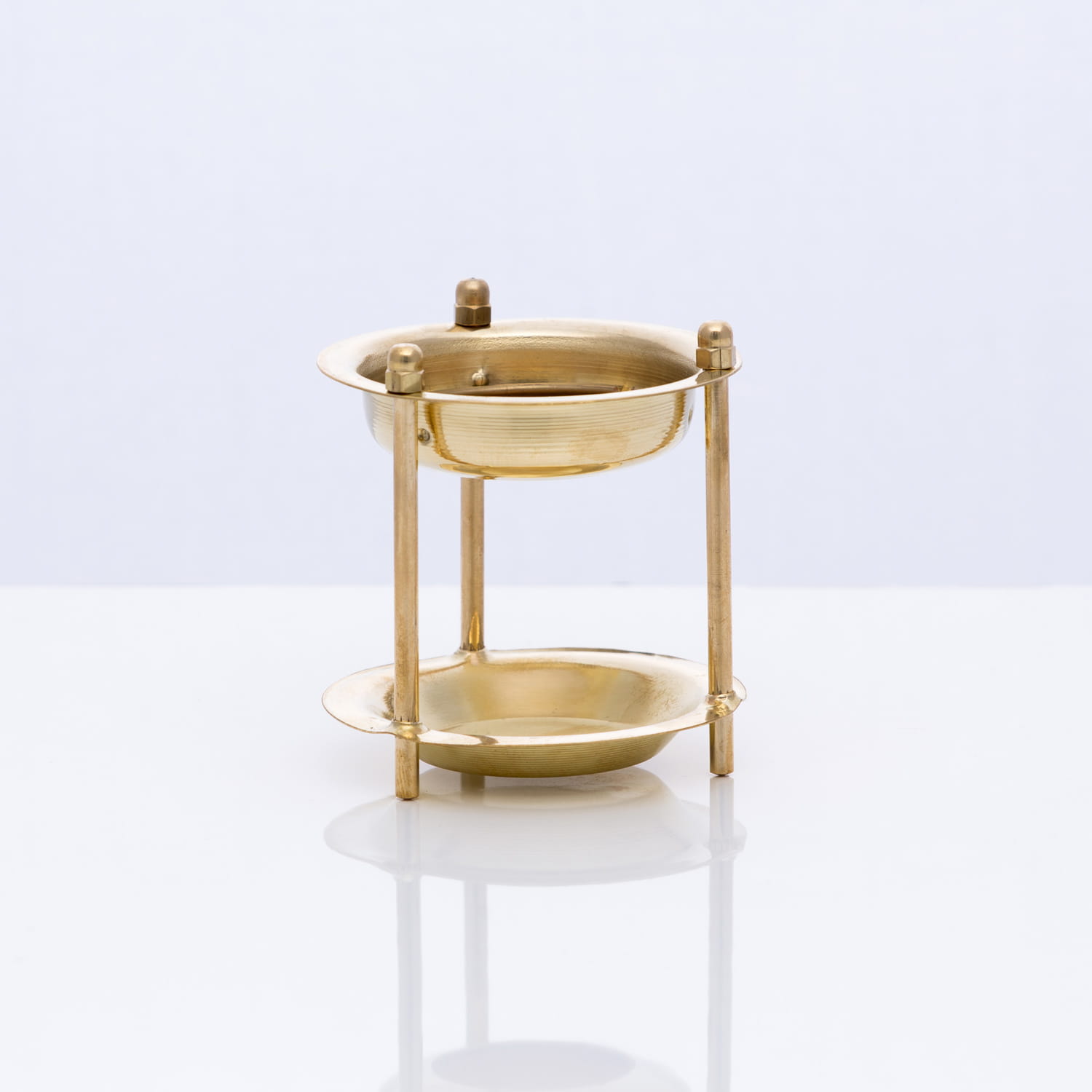 Kadzielniczka wykonana jest z mosiądzu. Do stosowania w wielometrowych pomieszczeniach jak i naszych salonach czy też w mieszkaniach w blokach. Podgrzewacz umieszczamy w dolnej miseczce, a na sitko wsypujemy od 1/2 do max 1 łyżeczki.