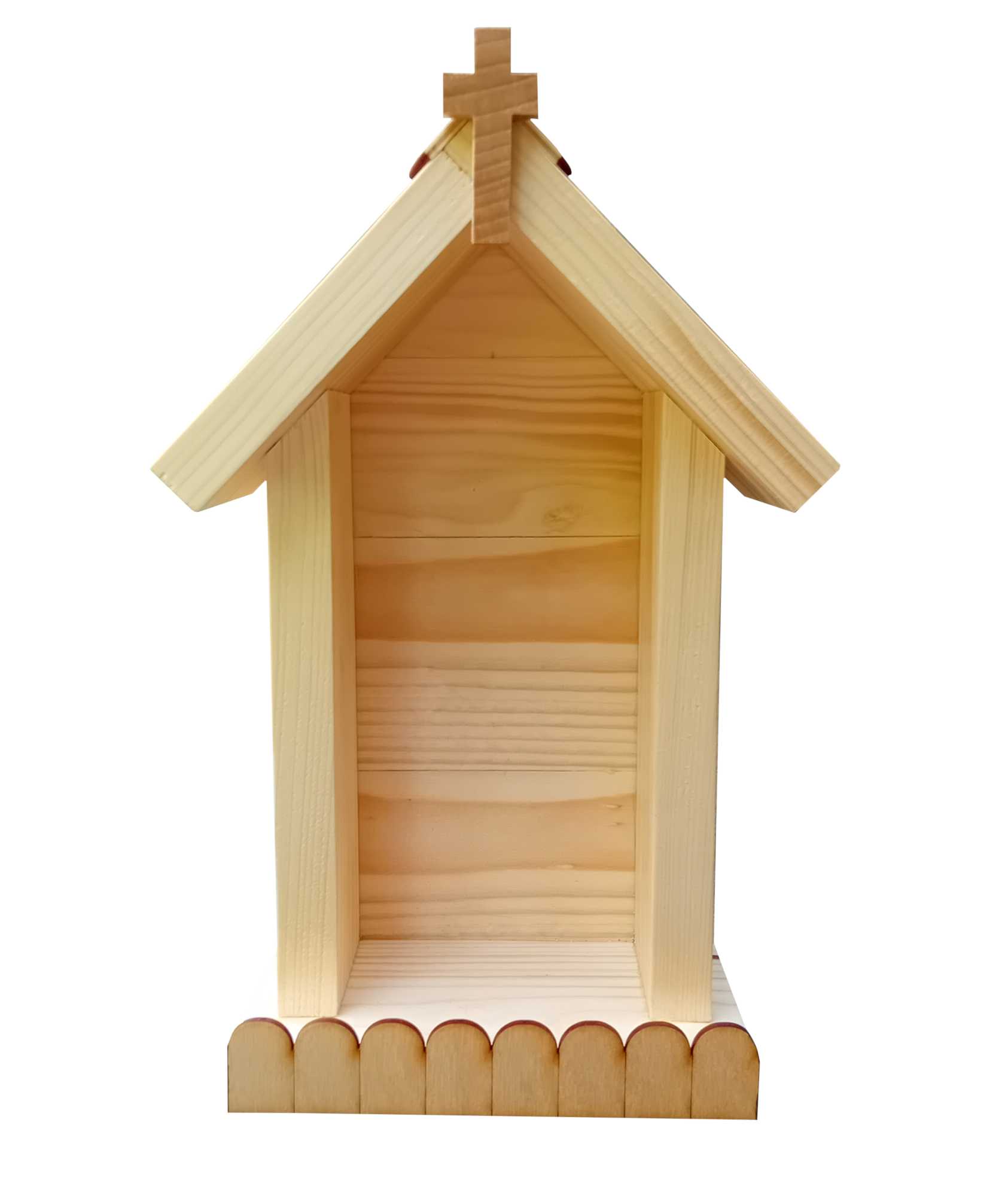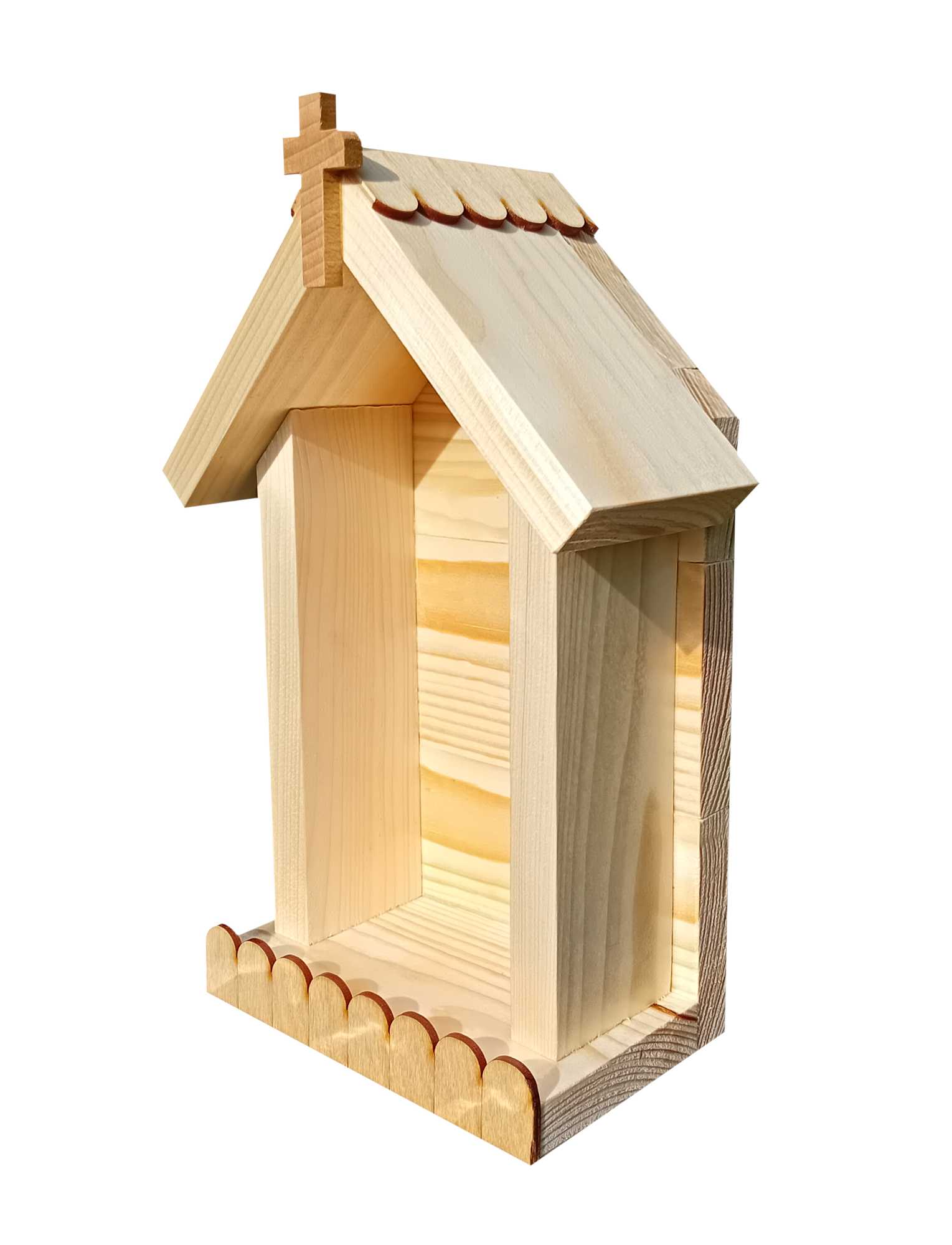 Kapliczki wytwarzane są ręcznie. Wyjątkowa faktura świerkowego nadaje kapliczce niepowtarzalny charakter. Każdy element jest starannie wykończony, emanując ciepłem i autentycznością.