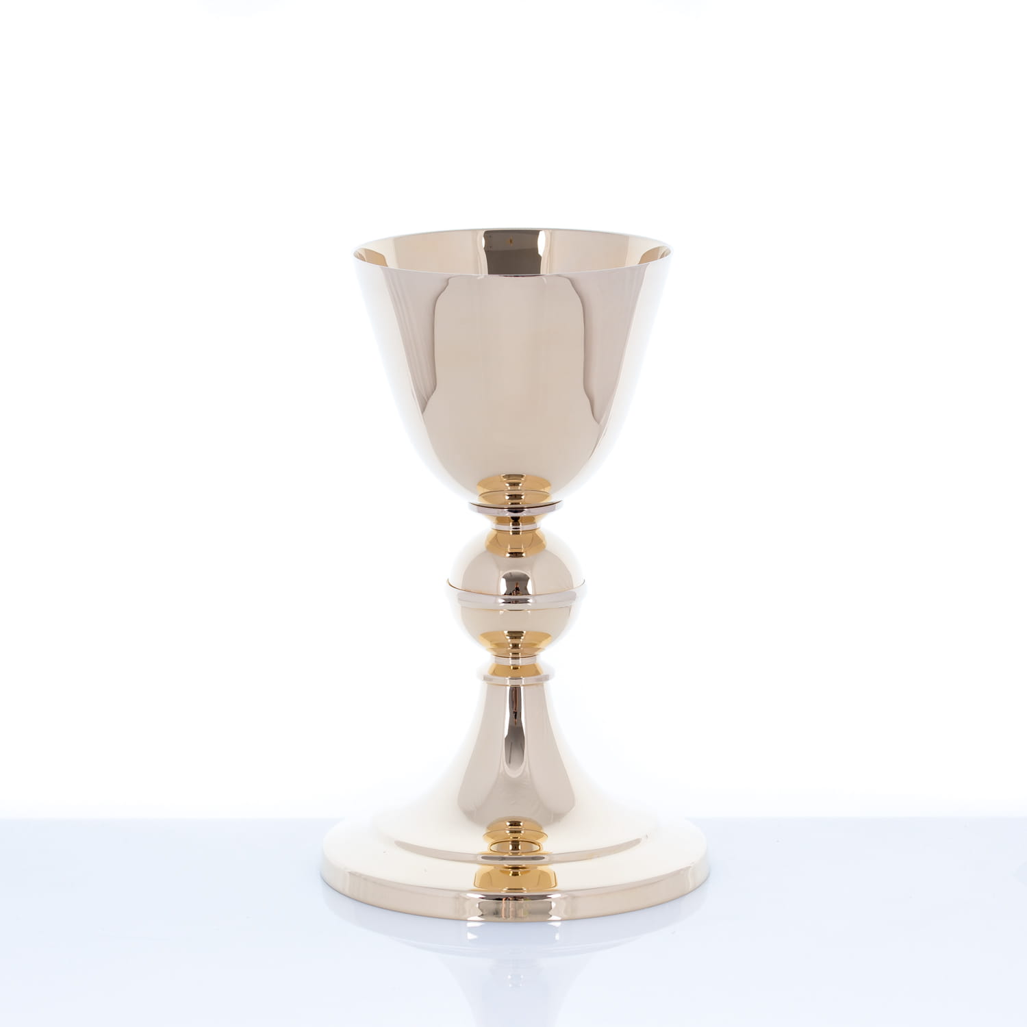 Kielich mszalny mosiężny złocony 24 karatowym złotem. Nodus-kula.