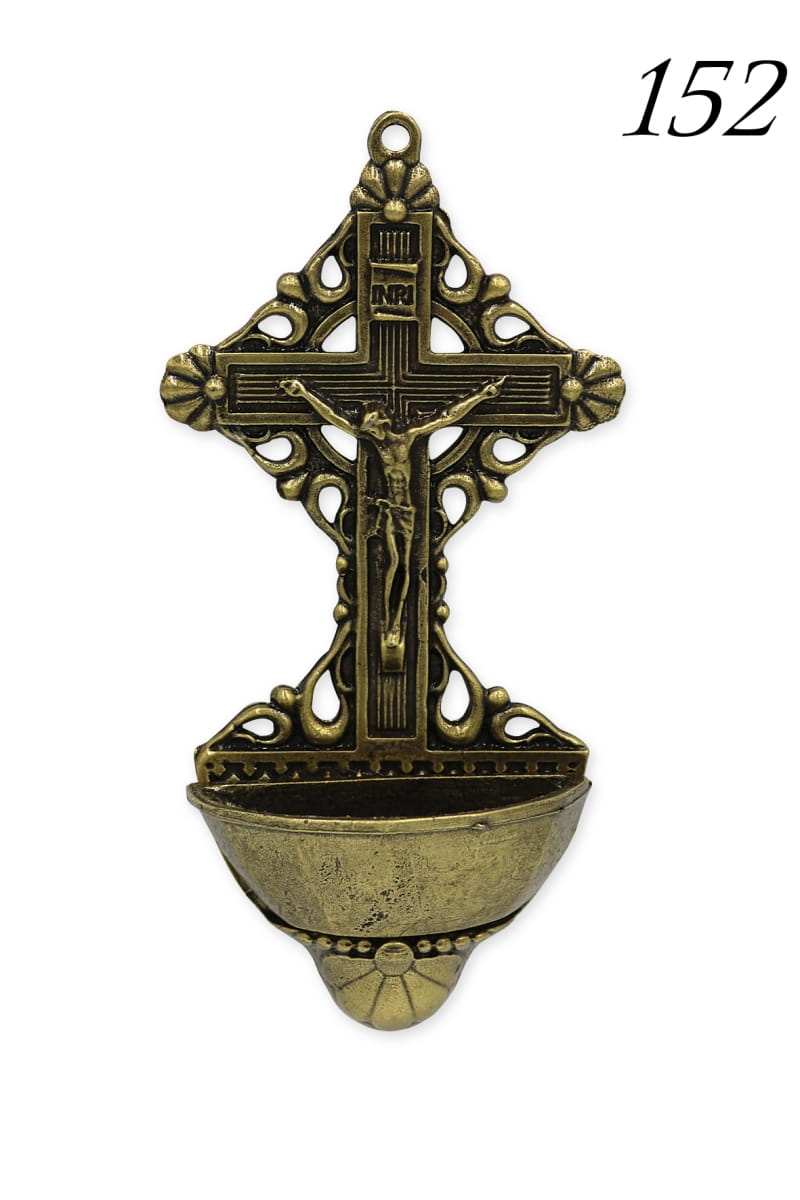 Nasze kropielnice zostały wykonane z trwałego metalu, pokrytego powłoką w kolorze starego złota. Dzięki temu prezentują się elegancko, a zarazem są odporne na użytkowanie. W górnej części znajduje się otwór, który umożliwia łatwe zawieszenie na drzwiach lub ścianie.