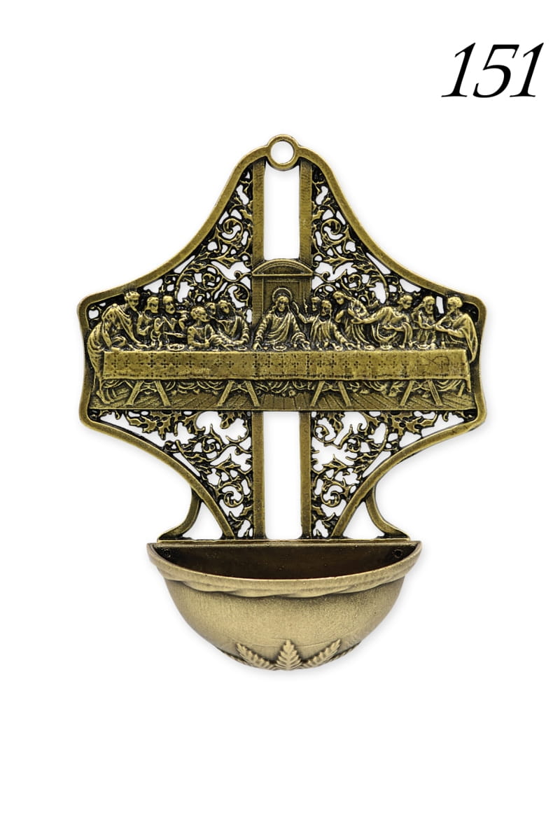 Nasze kropielnice zostały wykonane z trwałego metalu, pokrytego powłoką w kolorze starego złota. Dzięki temu prezentują się elegancko, a zarazem są odporne na użytkowanie. W górnej części znajduje się otwór, który umożliwia łatwe zawieszenie na drzwiach lub ścianie.