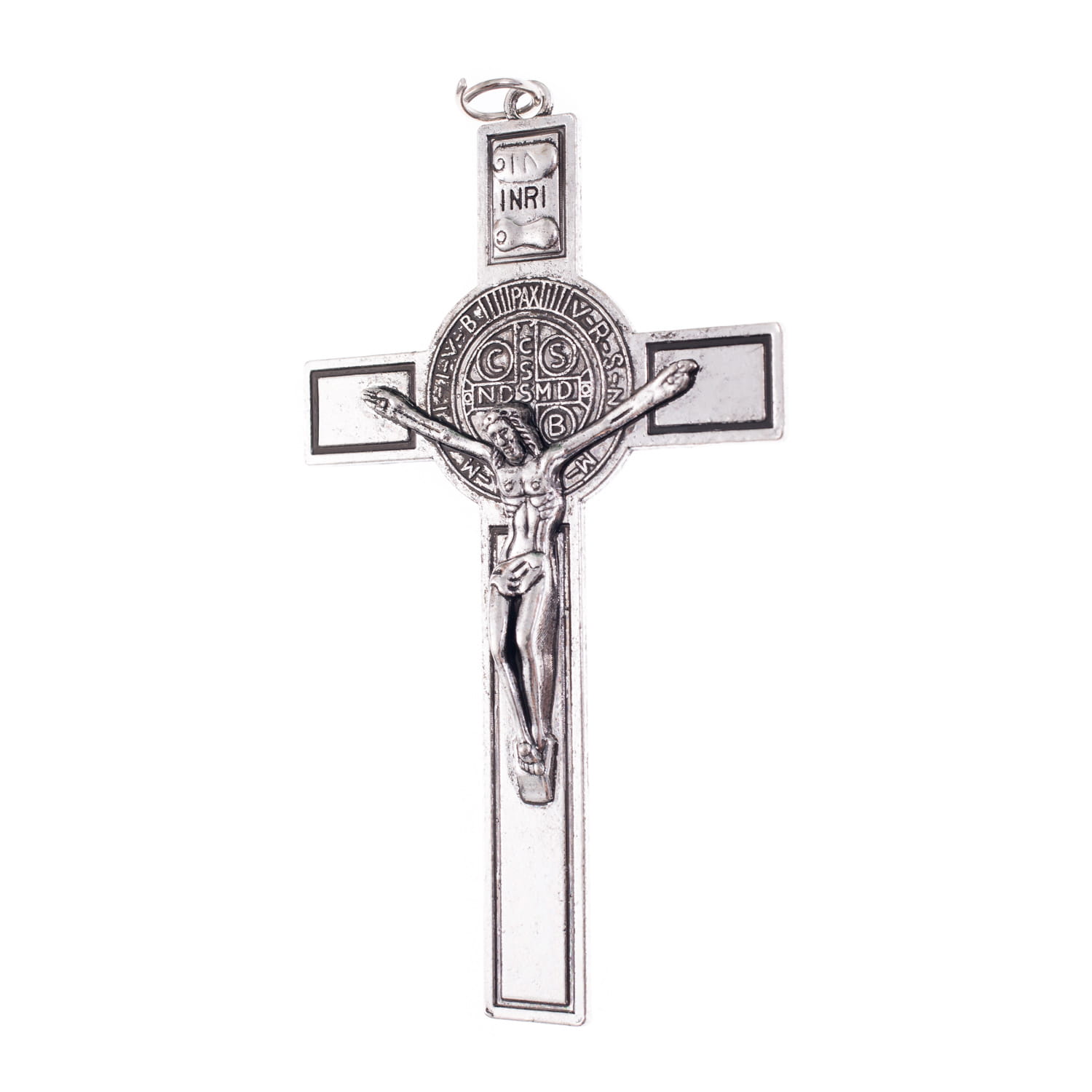 Krzyżyk Benedyktyński wykonany z metalu z kolorze starego srebra. Medalion Benedykta w kolorze srebrnym zamieszczony jest na awersie oraz rewersie. Krzyżyk można umieścić jako brelok do kluczy, na rzemyk na szyję lub do pasa czy też na ścianę, itp.
