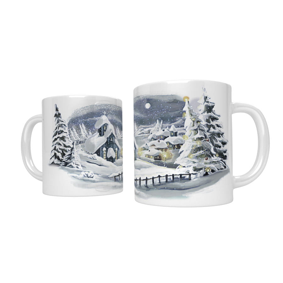 Kubek Zimowy las, pojemność 330 ml. Najwyższej klasy ceramiczny kubek odporny na mycie w zmywarce z trwałym nadrukiem i nieblednącymi kolorami.