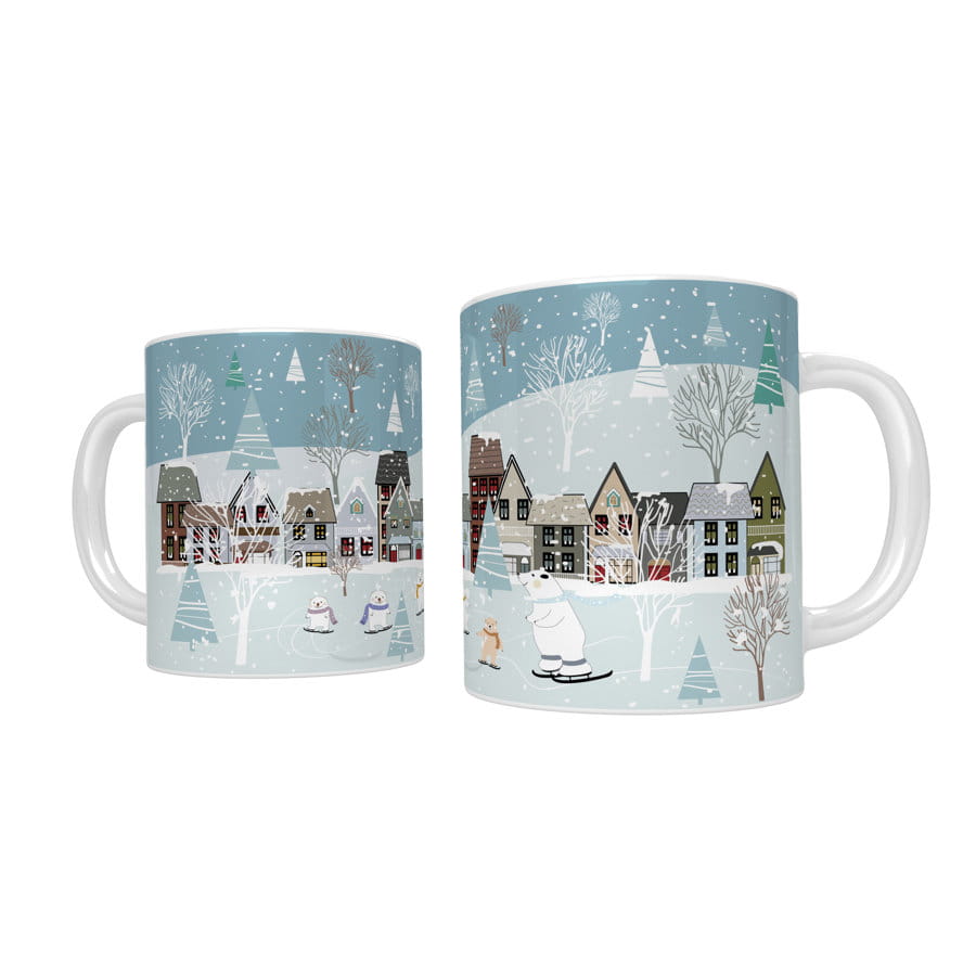 Kubek Zimowy las, pojemność 330 ml. Najwyższej klasy ceramiczny kubek odporny na mycie w zmywarce z trwałym nadrukiem i nieblednącymi kolorami.