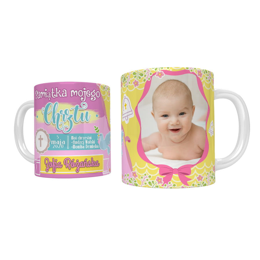 Spersonalizowany kubek na Chrzest może stanowić wspaniałą pamiątkę dla dziecka jak i dla gości, rodziców i rodziców chrzestnych. Prześlij zdjęcie, podaj dane i dodaj do koszyka, my zajmiemy się resztą.