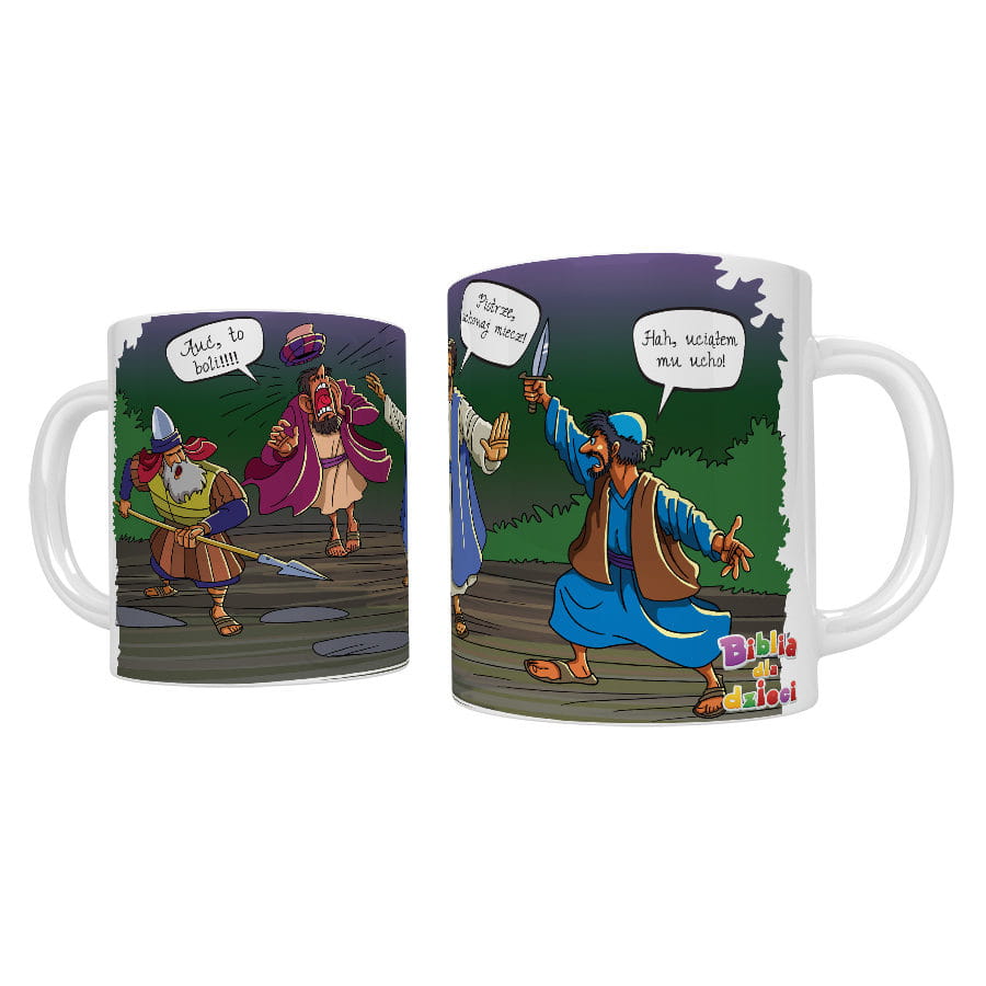 Kubek stworzony z myślą o dzieciach w wieku przedszkolnym i wczesnoszkolnym. Kubki z motywami biblijnymi w przystępnej formie rysunkowej z elementami komiksu są wspaniałym elementem edukacji dzieci jak również pomagają zrozumieć najważniejsze sceny opowiedziane w Piśmie Świętym. Produkt szczególnie polecany dla przedszkoli i katechetów, parafii organizujących zajęcia dla dzieci ale również dla rodziców, którzy dbają o właściwy rozwój duchowy swoich pociech.