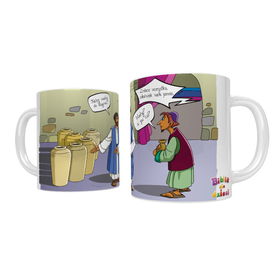 Kubek stworzony z myślą o dzieciach w wieku przedszkolnym i wczesnoszkolnym. Kubki z motywami biblijnymi w przystępnej formie rysunkowej z elementami komiksu są wspaniałym elementem edukacji dzieci jak również pomagają zrozumieć najważniejsze sceny opowiedziane w Piśmie Świętym. Produkt szczególnie polecany dla przedszkoli i katechetów, parafii organizujących zajęcia dla dzieci ale również dla rodziców, którzy dbają o właściwy rozwój duchowy swoich pociech.
