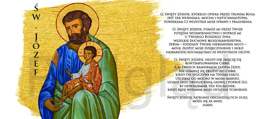 Kubek religijny z modlitwą do świętego Józefa; najwyższej klasy ceramiczny kubek z wizerunkiem św. Józefa. Kubek do herbaty lub kawy ze starożytną modlitwą do św. Józefa, która podobno nigdy nie zawodzi. Modlitwa musi być odmówiona przez dziewięć dni w szczerej intencji prawdziwego, duchowego dobra.