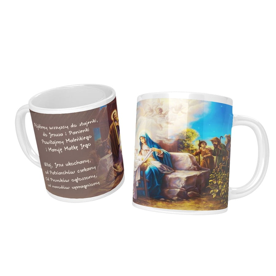 Kubek ze stajenką i narodzonym Jezusem oraz słowami kolędy, pojemność 330 ml.