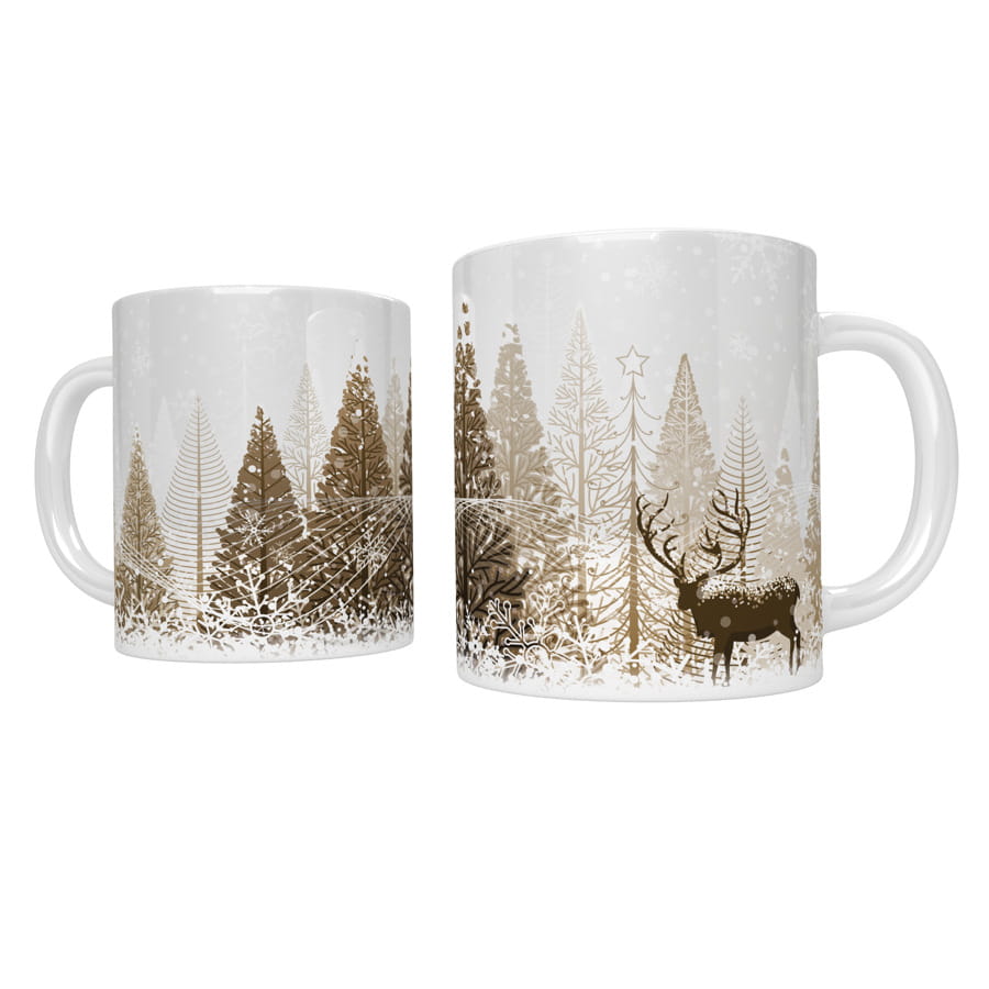 Kubek z choinkami, pojemność 330 ml. Najwyższej klasy ceramiczny kubek odporny na mycie w zmywarce z trwałym nadrukiem i nieblednącymi kolorami.