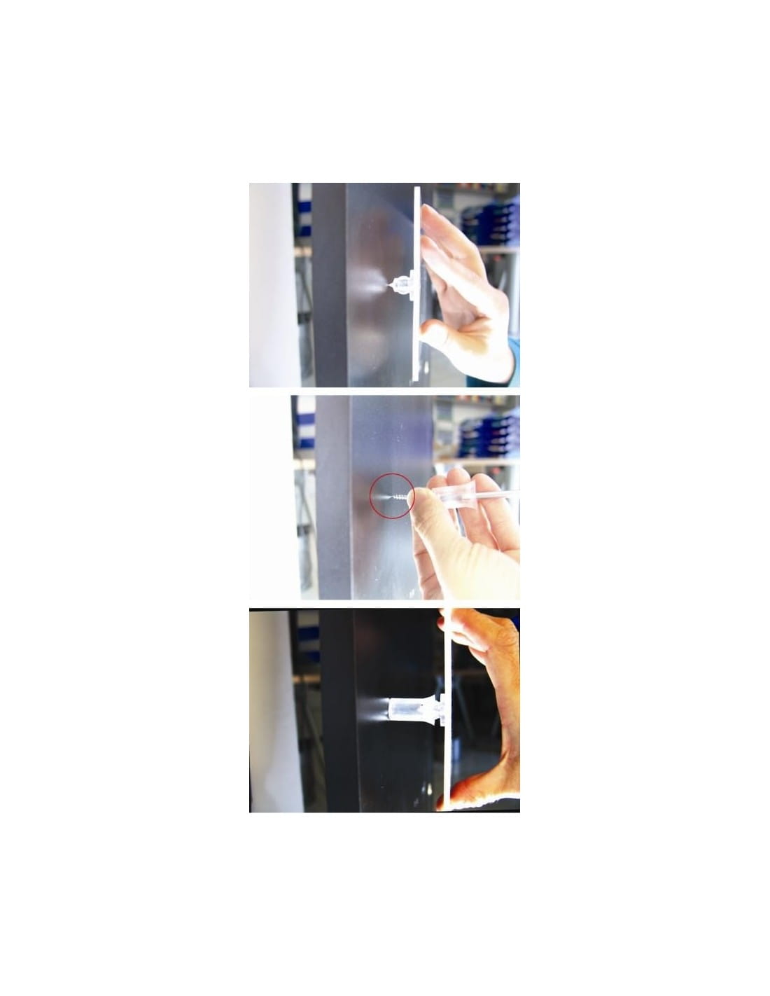 Obrazy święte wykonane na płycie PLEXI przez Art Christiana montowane są do ściany za pomocą akrylowych dystansów o długości 2 cm, ale są one niewidoczne od frontu obrazu. Zestaw czterech dystansów można zakupić dodatkowo. Najpierw przyklej w wybranym miejscu na tabliczce "klips" za pomocą taśmy samoprzylepnej, silikonu lub kleju. Dzięki zaostrzonej końcówce możesz zaznaczyć na ścianie punkty, w których umieścisz kołki pod wkręty. Przykręć dystans do ściany, dociśnij obraz i gotowe! Obraz dostarczany jest z folią ochronną na froncie, po zamontowaniu obrazu należy ja delikatnie usunąć.