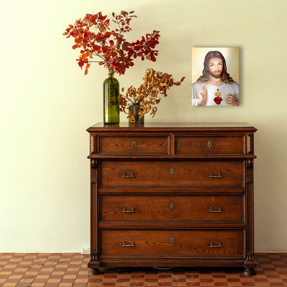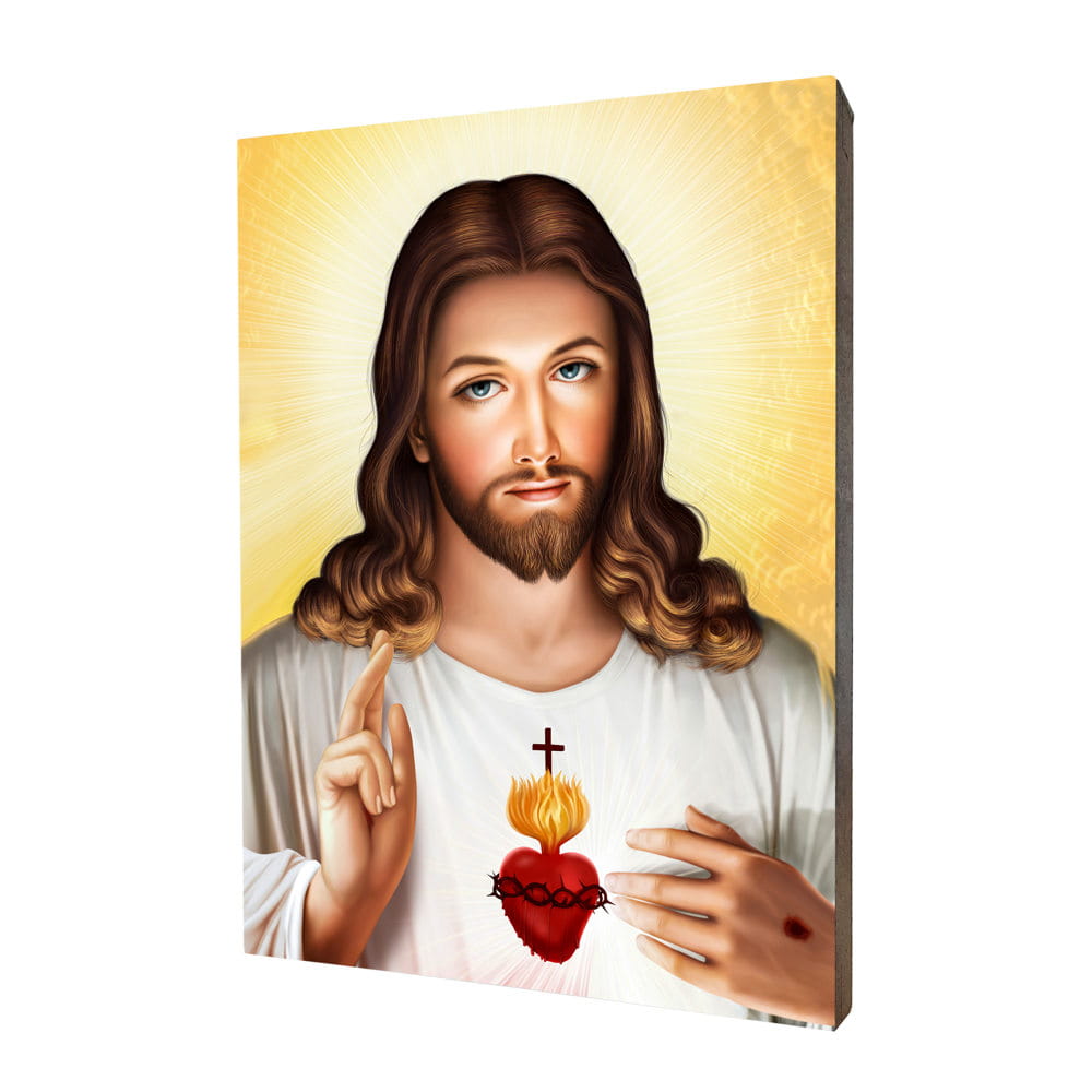 Dzięki estetycznemu wykończeniu obraz na desce lipowej z Sercem Jezusa, nie wymaga dodatkowej oprawy a swoją formą przypomina ikonę. Obraz na drewnie może stanowić niezwykły upominek na każdą okazję: zarówno jako podarunek dla księdza lub siostry jak i z okazji Chrztu Świętego, Pierwszej Komunii Świętej, Bierzmowania czy Sakramentu Małżeństwa.