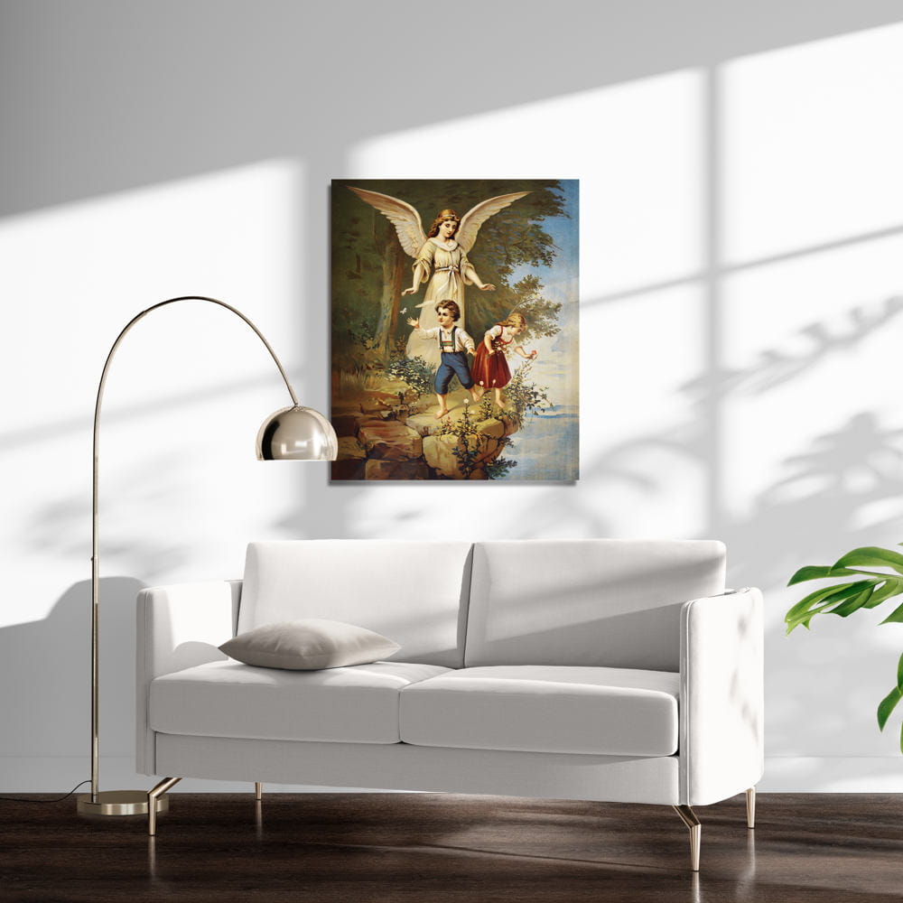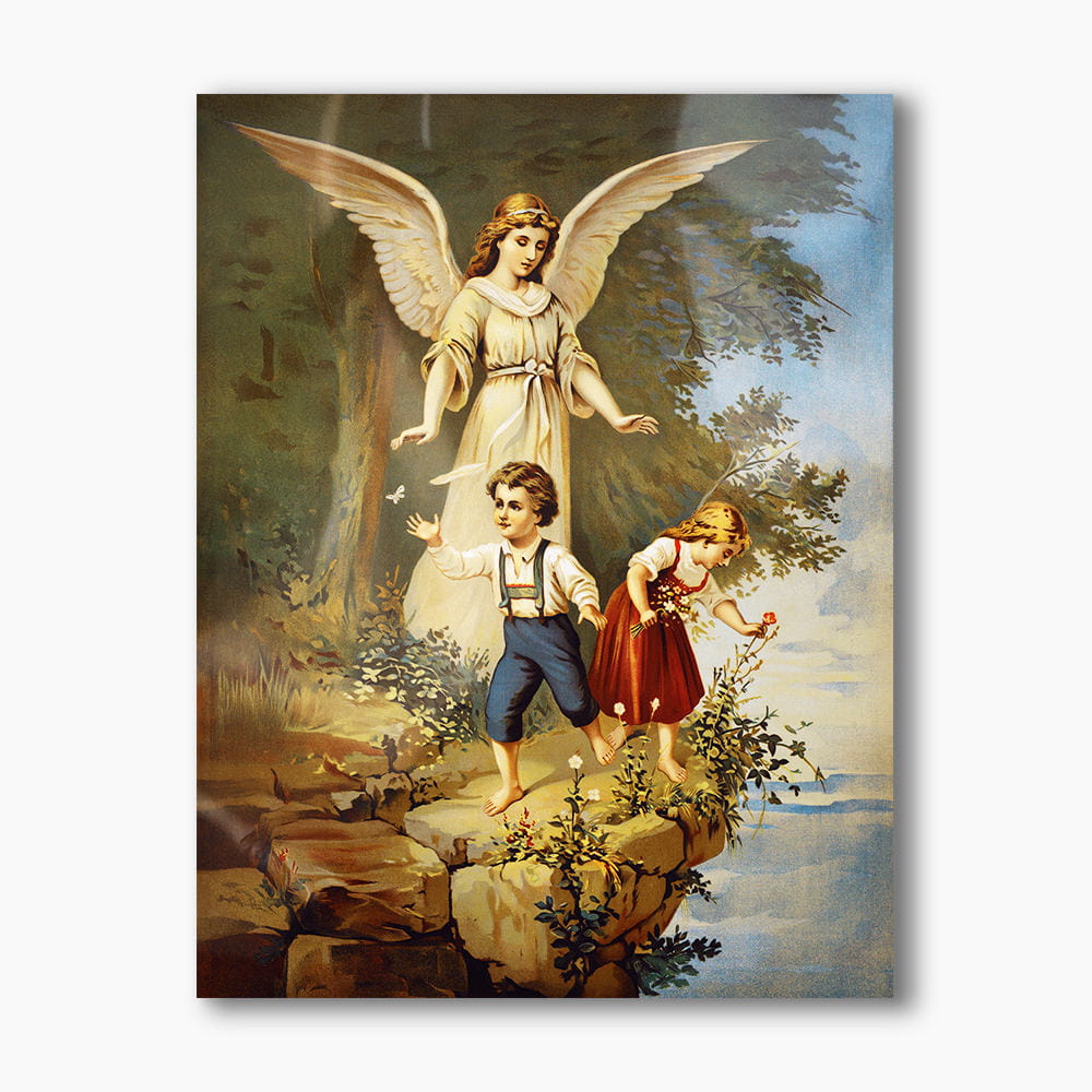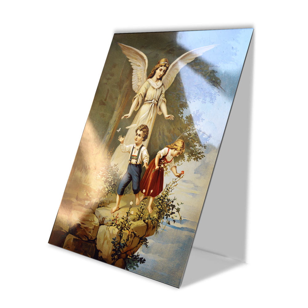 Nowoczesny obraz religijny plexi, Anioł Stróż z dziećmi nad skarpą