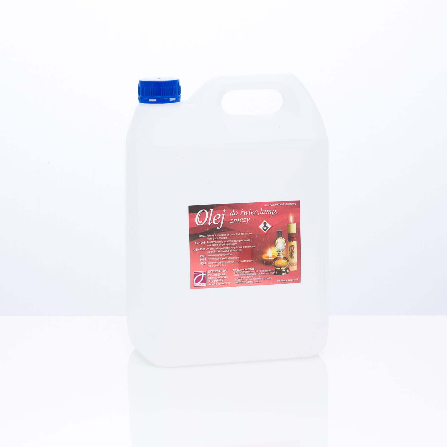 Olej do świec. Pojemność 5 litrów. Olej posiada atesty pzh oraz analizę bezdymności temperaturę krzepnięcia -35 °c oraz temperaturę zapłonu powyżej 120 °C wykonaną w certyfikowanym laboratorium.