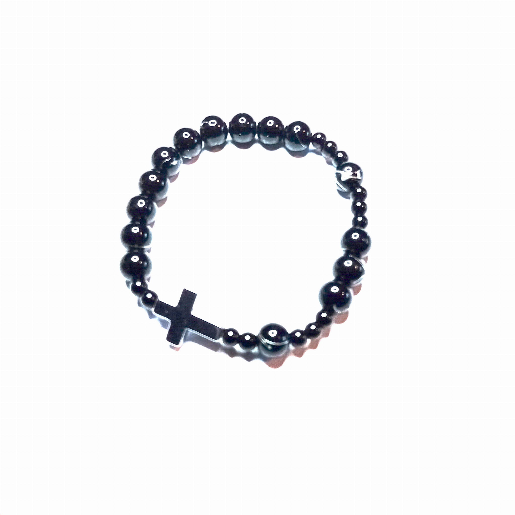 Kamienie takie jak czarny agat i obsydian pomagają w ochronie przed negatywnymi wpływami i wspierają procesy oczyszczenia oraz duchowej transformacji. Krzyżyk z hematytu przypomina o ofierze Chrystusa i dodaje modlitwie głębszego wymiaru duchowego. Noszenie tej bransoletki to nie tylko wyraz wiary, ale także sposób na utrzymanie duchowej więzi z Bogiem w codziennym życiu. Każdy koralik staje się przypomnieniem o modlitwie i o sile, jaką daje nam Boża opieka i miłość.