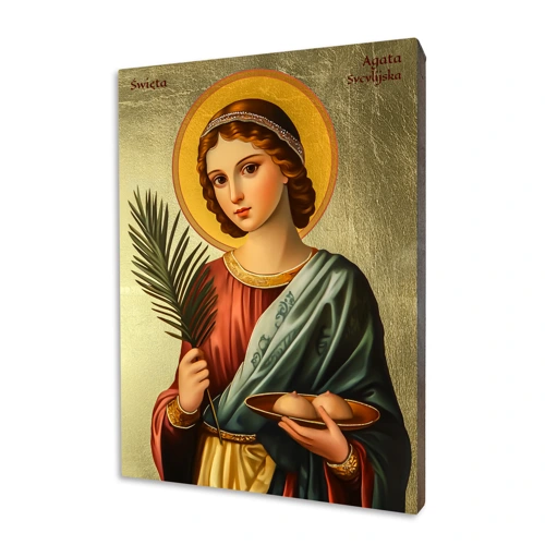 Ikona Świętej Agaty to doskonały wybór do domowego ołtarzyka, ale także świetnie sprawdzi się jako dekoracja w kościele, kaplicy czy w miejscu pracy. Może być także wartościowym prezentem na takie okazje jak chrzest, bierzmowanie, ślub, czy jako gest wsparcia dla osób zmagających się z chorobą.