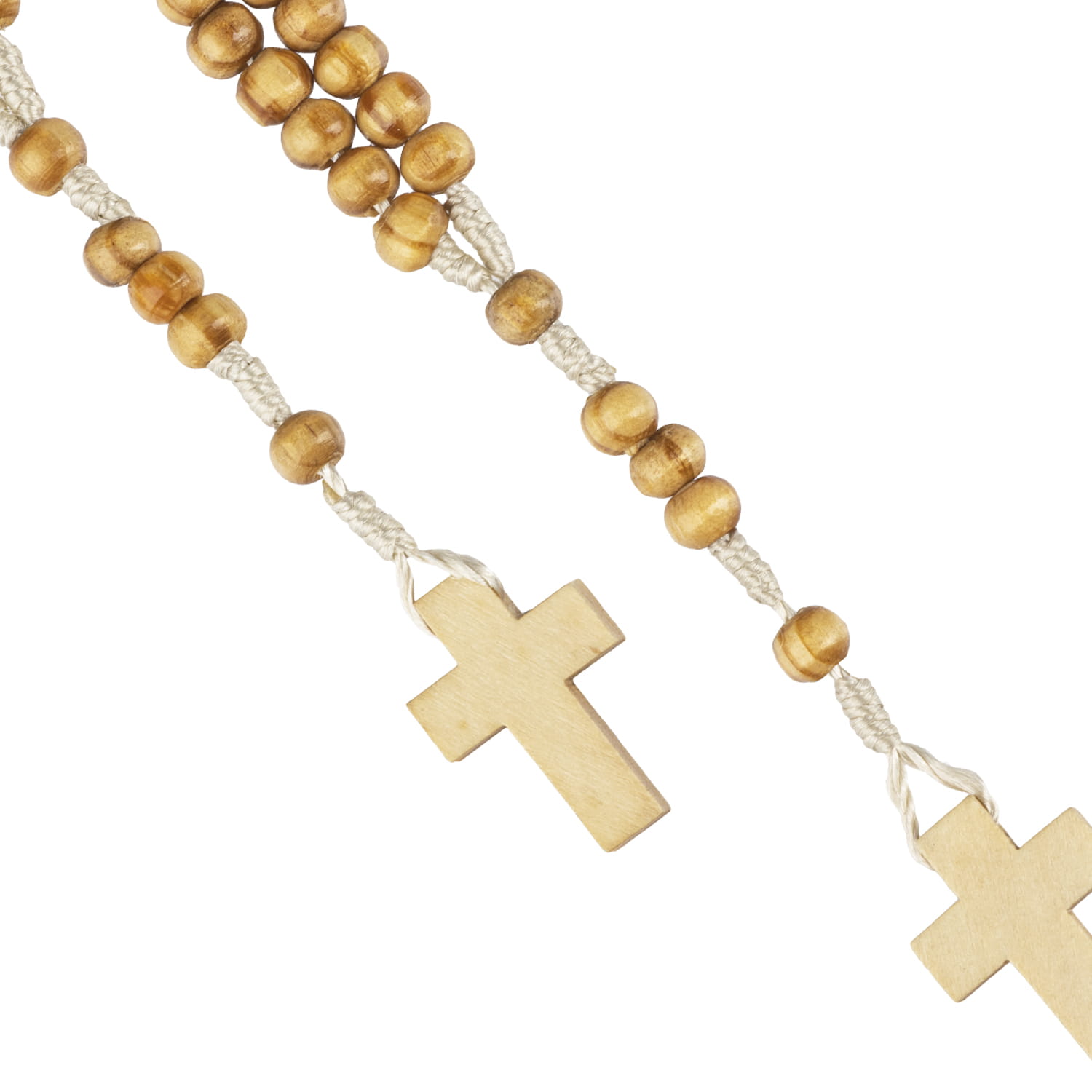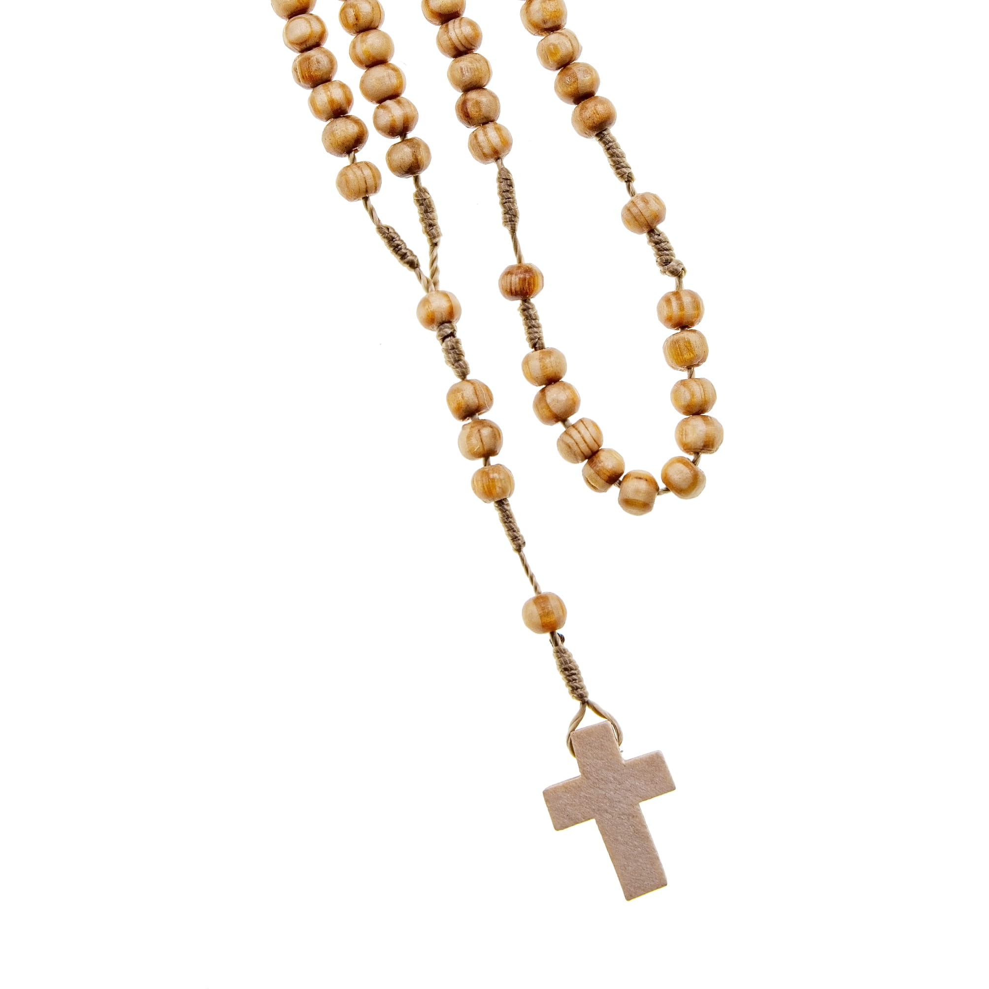 Różaniec drewniany w kolorze naturalnego drewna na sznurku z krzyżykiem. Krzyżyk różańca czysty. Koraliki zabezpieczone lakierem bezbarwnym.