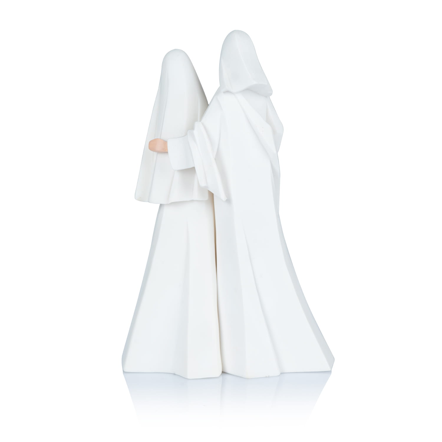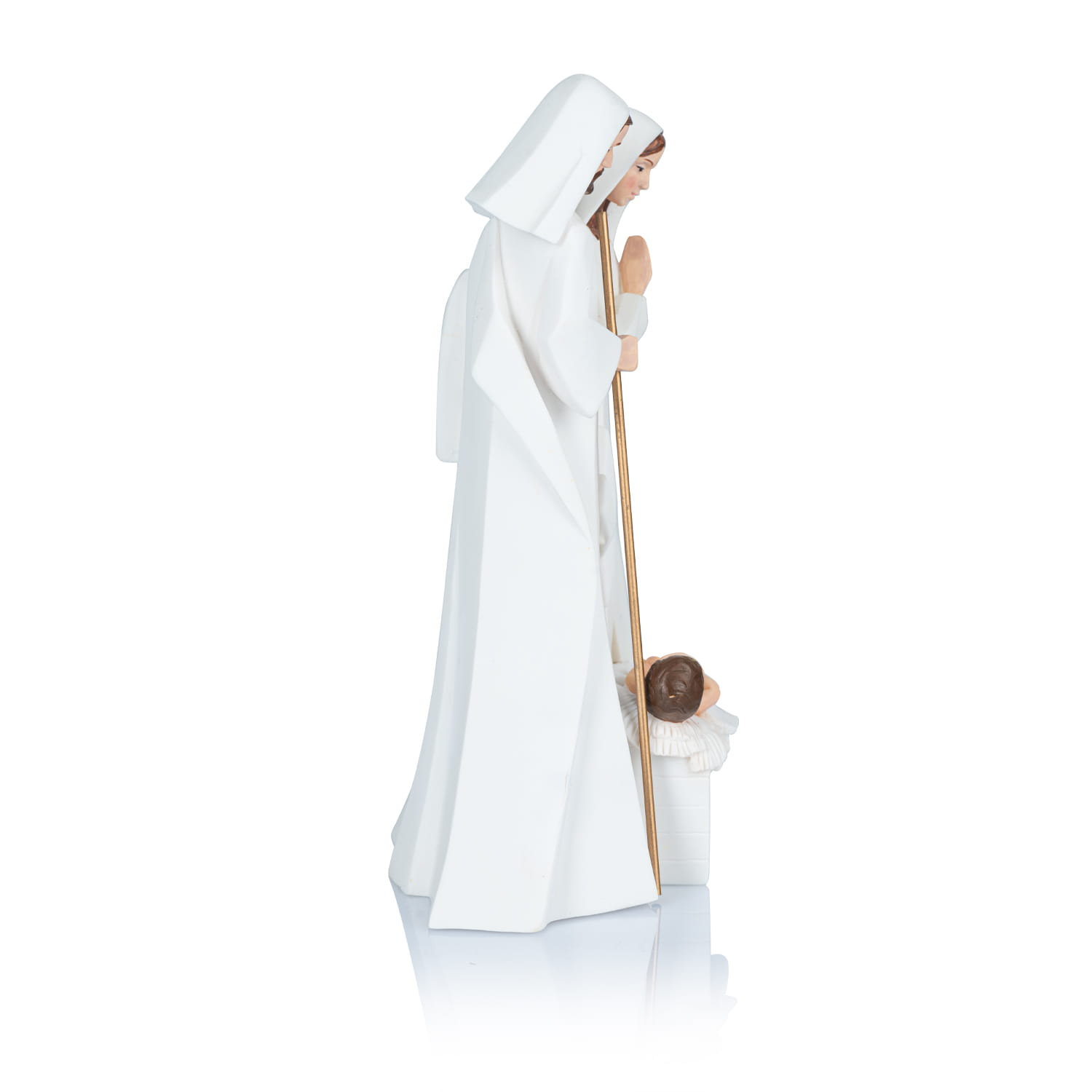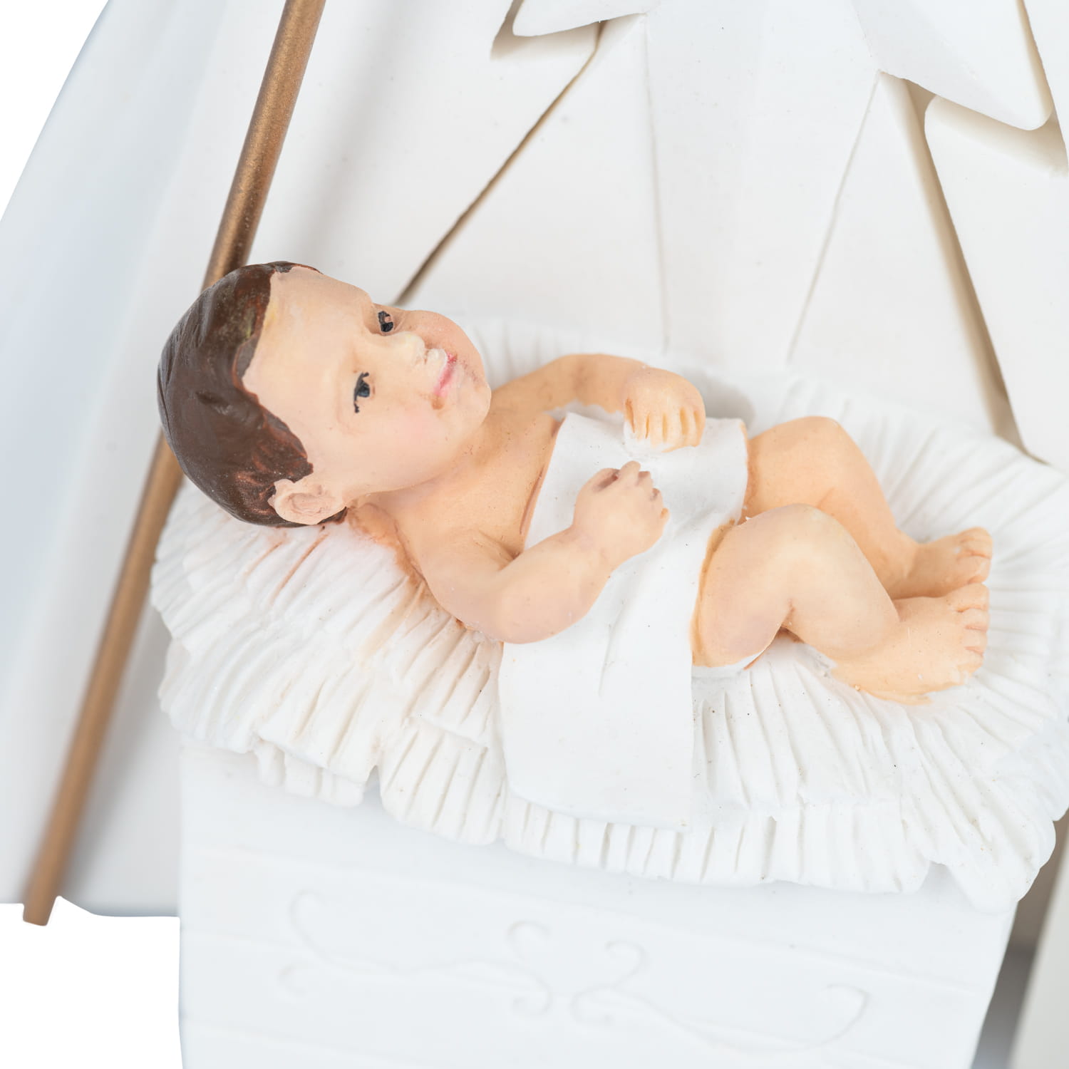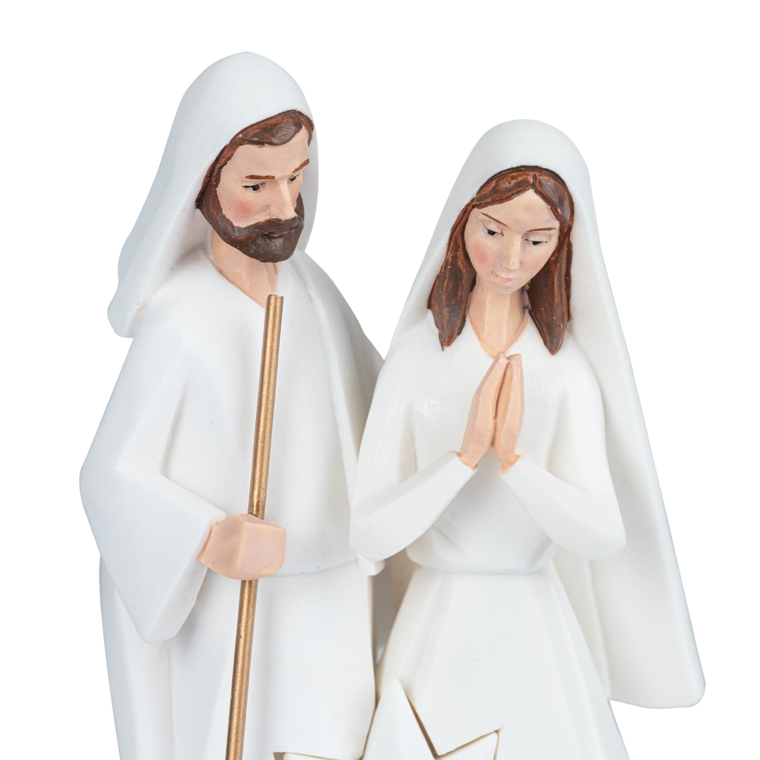 Ręcznie malowana szopka bożonarodzeniowa przedstawia Świętą Rodzinę w eleganckiej, minimalistycznej wersji. Utrzymana w delikatnej, białej kolorystyce, szopka wyróżnia się subtelnymi detalami, które nadają jej wyjątkowego, klasycznego charakteru. Figurki Maryi, Józefa i Dzieciątka Jezus są prosto, ale niezwykle precyzyjnie odwzorowane.