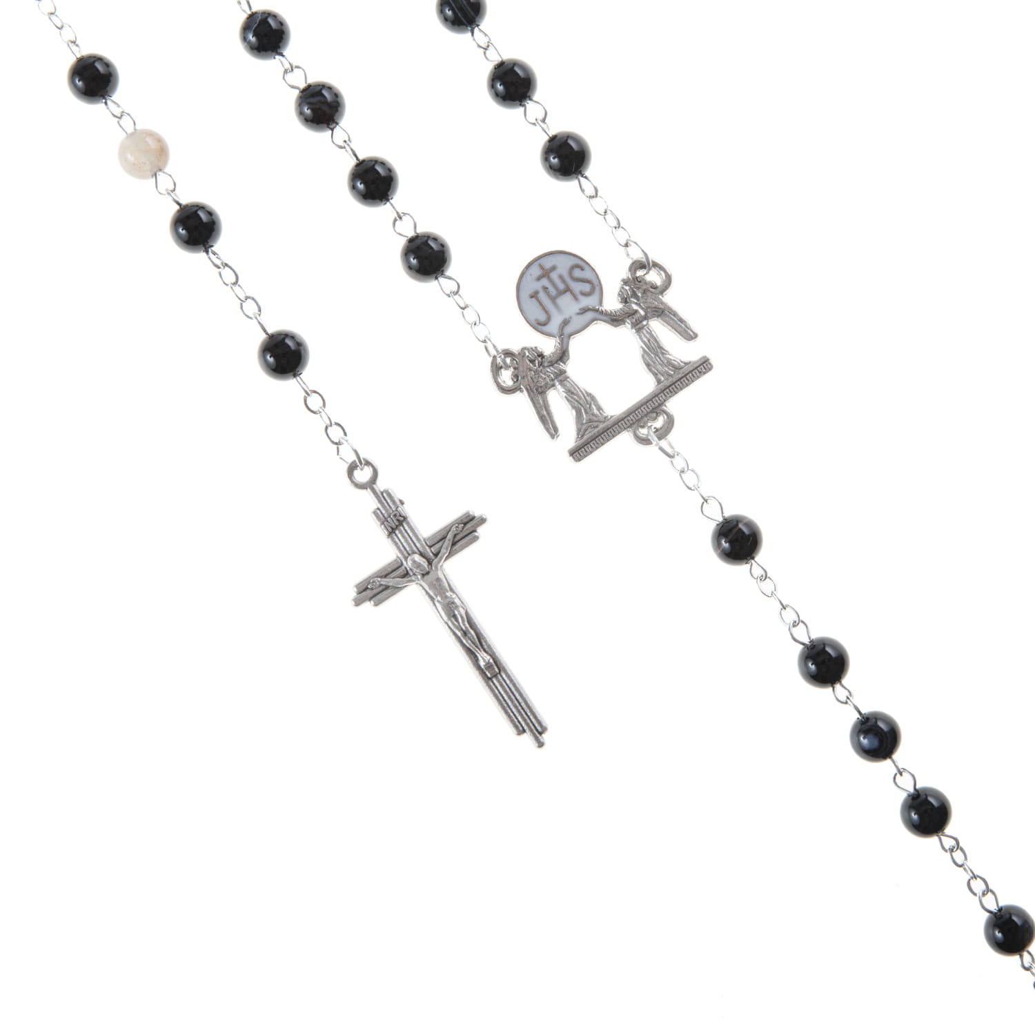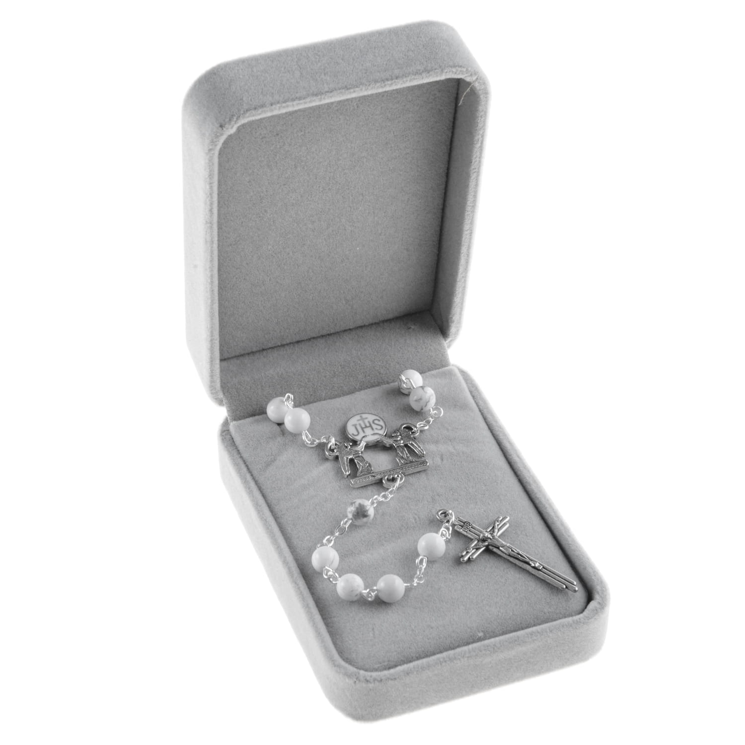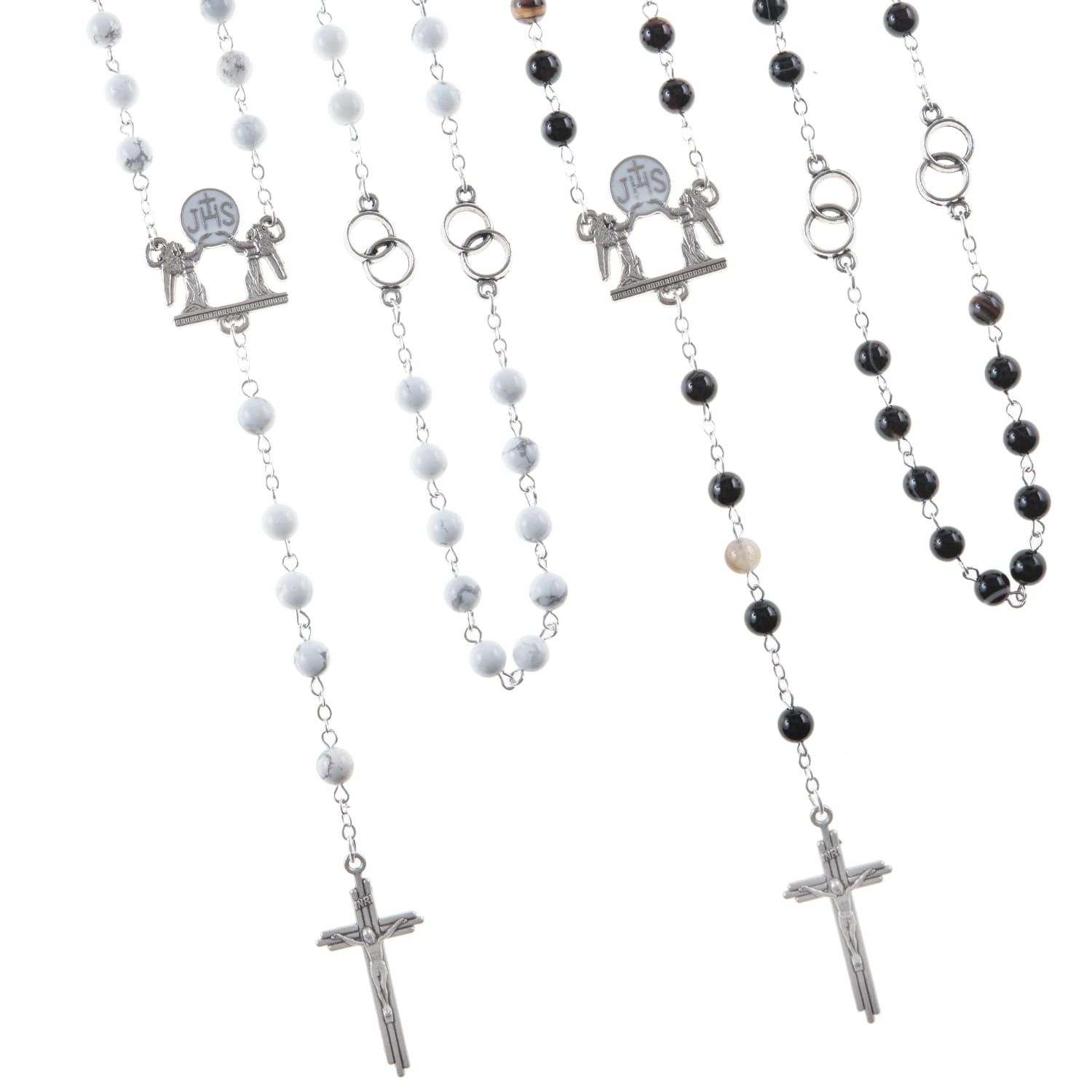 Różańce ślubne - biały turkus i czarny agat - komplet