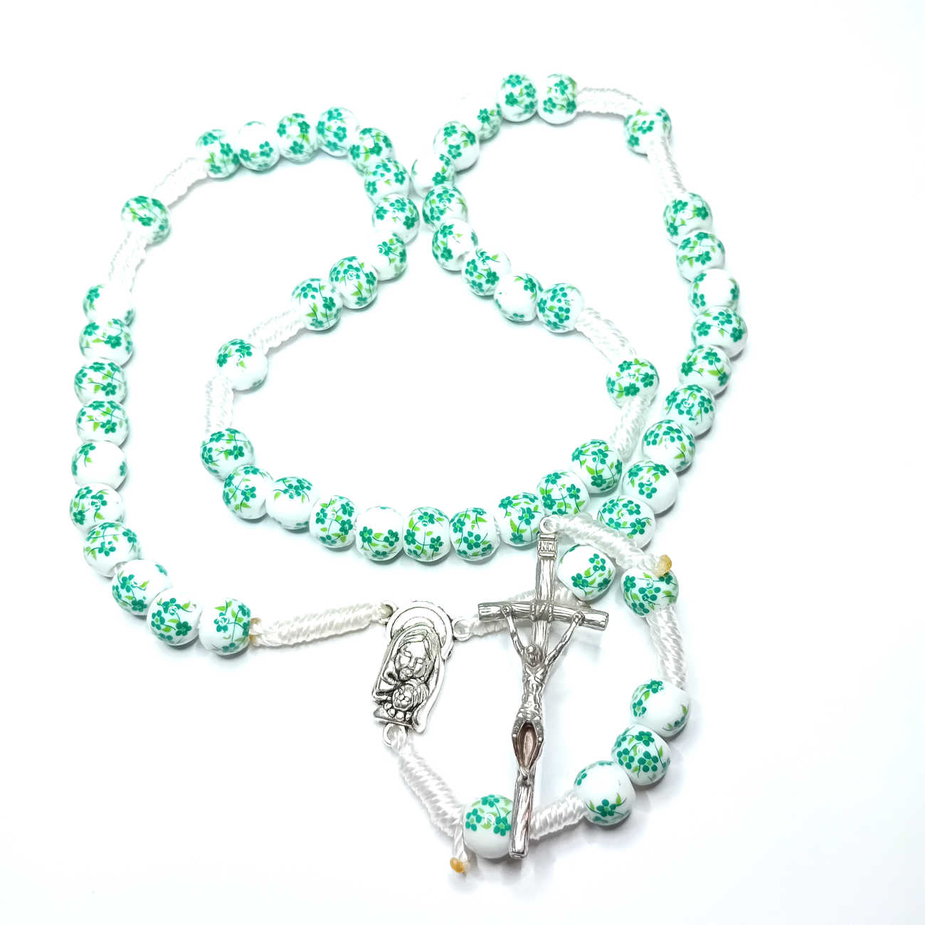Różaniec ceraiczny - kwiatuszki-zielone