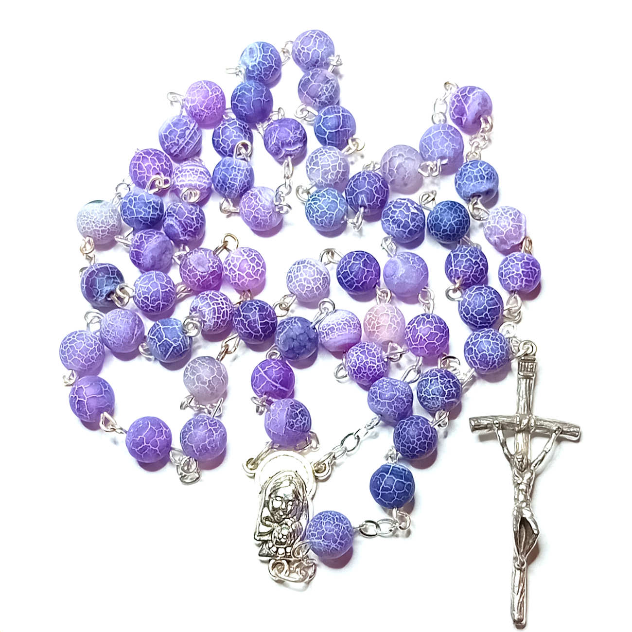 Różaniec z kamienia naturalnego – agat mrożony fioletowo-lawendowy