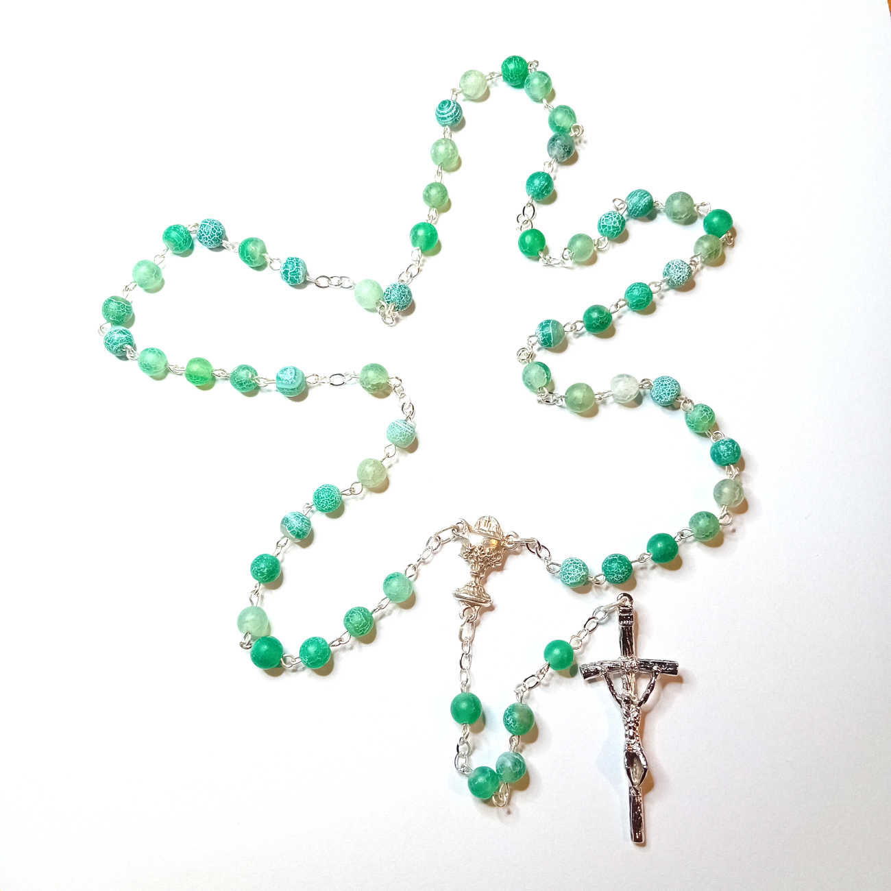 Różaniec do Pierwszej Komunii - kamień naturalny - agat mrożony zielony