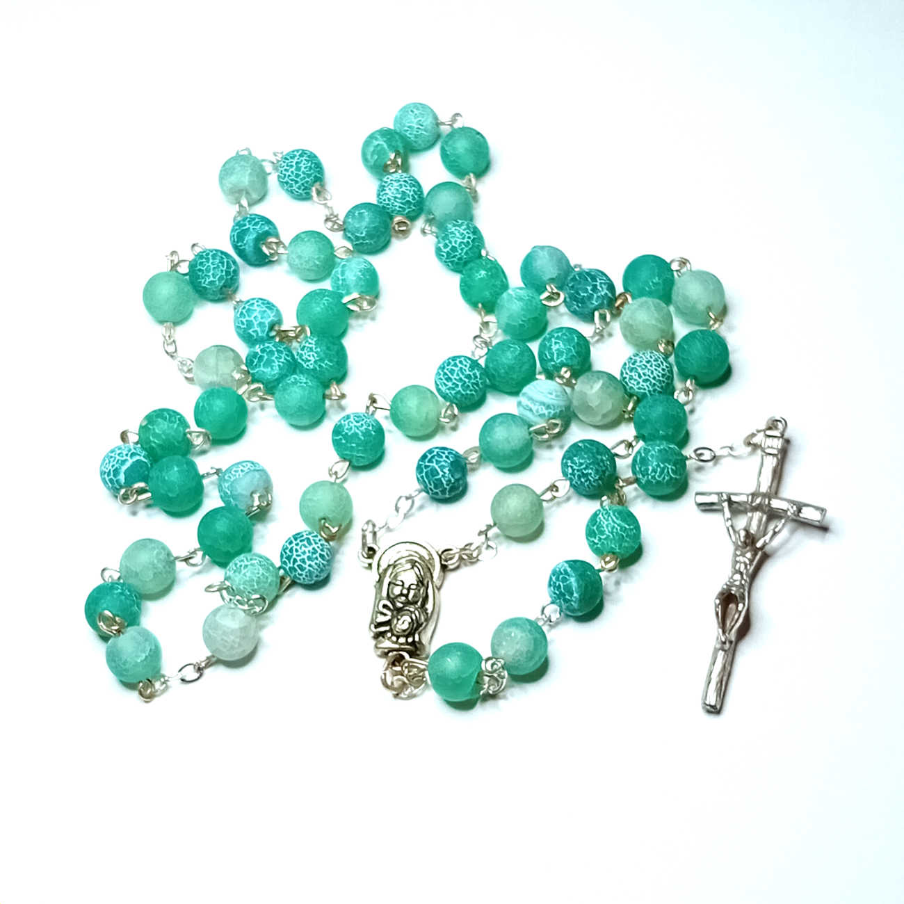 Opis różańca z kamienia naturalnego – agat zielony mrożony